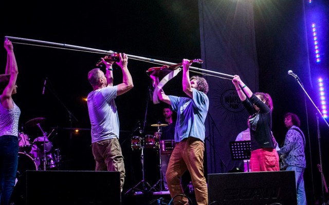 So here goes Emir being silly with a band.He’s not much of a guitar player, that’s for sure. He does however make up for what could be a rather fatal flaw, given that this is a concert after all, by being generally entertaining in his usual slightly over the top way. Occasionally one can get an eerie feeling that this is the musical version of Top Gear- middle aged men behaving like they never left high school, or never started it for that matter. But just as in Top Gear the cars are always brilliant, so are the other musicians in his band. And in case someone is still left unsatisfied, you can always wax philosophical on why on earth is the keyboard player wearing a judo outfit and what makes him about a million times happier than Pharrell.