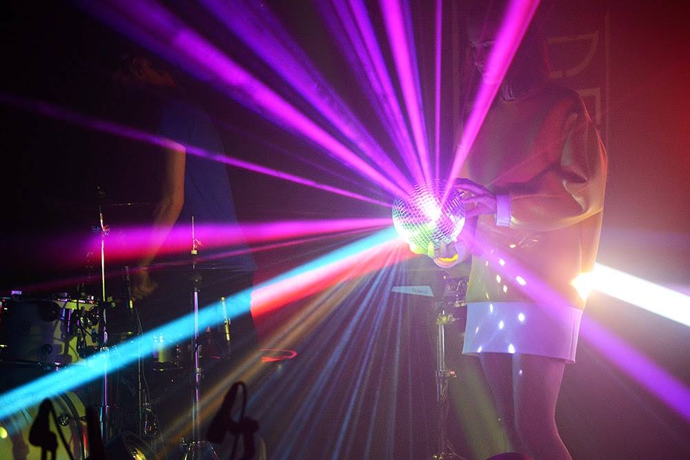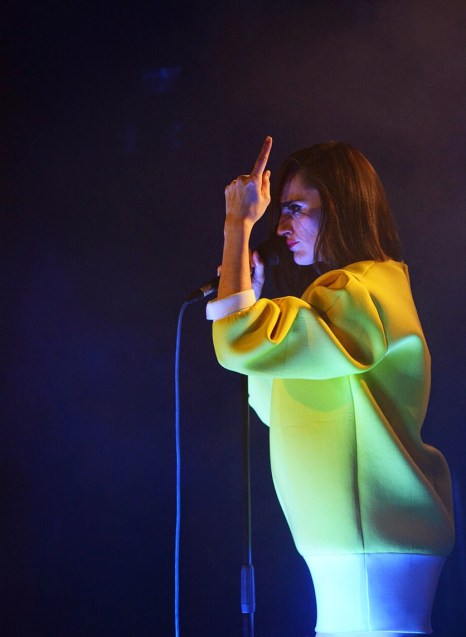 It probably helps that she’s one of those artists who don’t consider electro to be an excuse to sit behind a keyboard and/or Mac, but music that should be performed and especially danced to. The fact that she does it all in splendid red metallic leggings is just the icing on the cake.