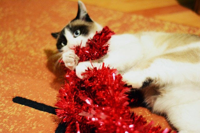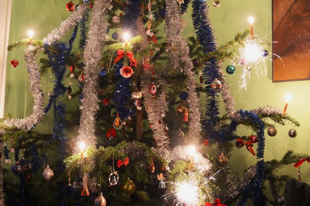 It started with Easter weather, but went on to become quite polar. The cats did not break the tree, hard as they tried, but the little one tested her first snow. The red star shone on, and I can still find a store or two that sells Christmas candles for dinosaurs like me. All in all, a great success.
