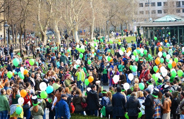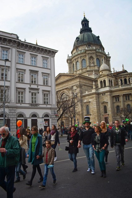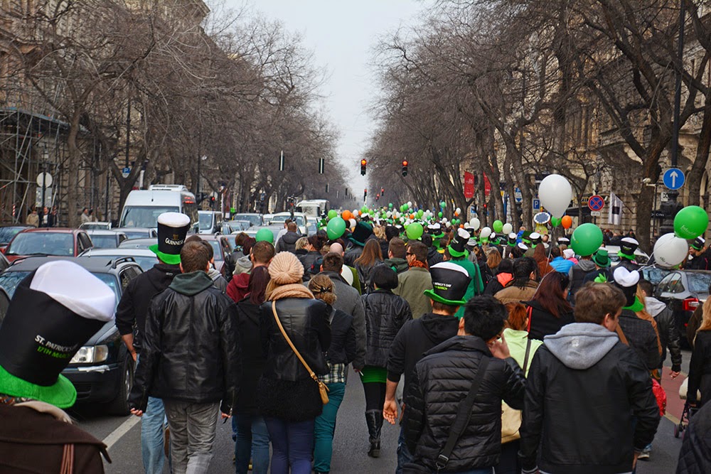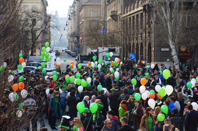 The crowds are larger every year, to the confusion and merriment of passers by- and not so much merriment for the folks stuck in their cars on Andrássy avenue as the long orange-white-green snake slowly crawled away towards Instant. Two little old ladies were so taken aback by the sight that they insisted this must be a political party, albeit they had no idea which one it could be, since the Irish colours are most contradicting if one takes into account the local political spectrum.
