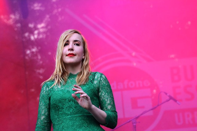 Austra came next, and whenever I see them play I can’t help but bow down to the entertaining randomness of their dress- the lead singer gingerly mixed peach, pink and a rather electric green, the guitarist donned a slightly crumpled white onesie that might have served him well as protective attire in an ice cream factory and the keyboard player showed up in a transparent netted cardigan. Their music is however the total opposite of random- while not as widely popular as they could be, their sound is probably pretty familiar and easy to identify to those into electronic/indie music. And it can also be danced to, occasionally, and dreamed to, on other occasions, so the more Austra in our our lives, the better.