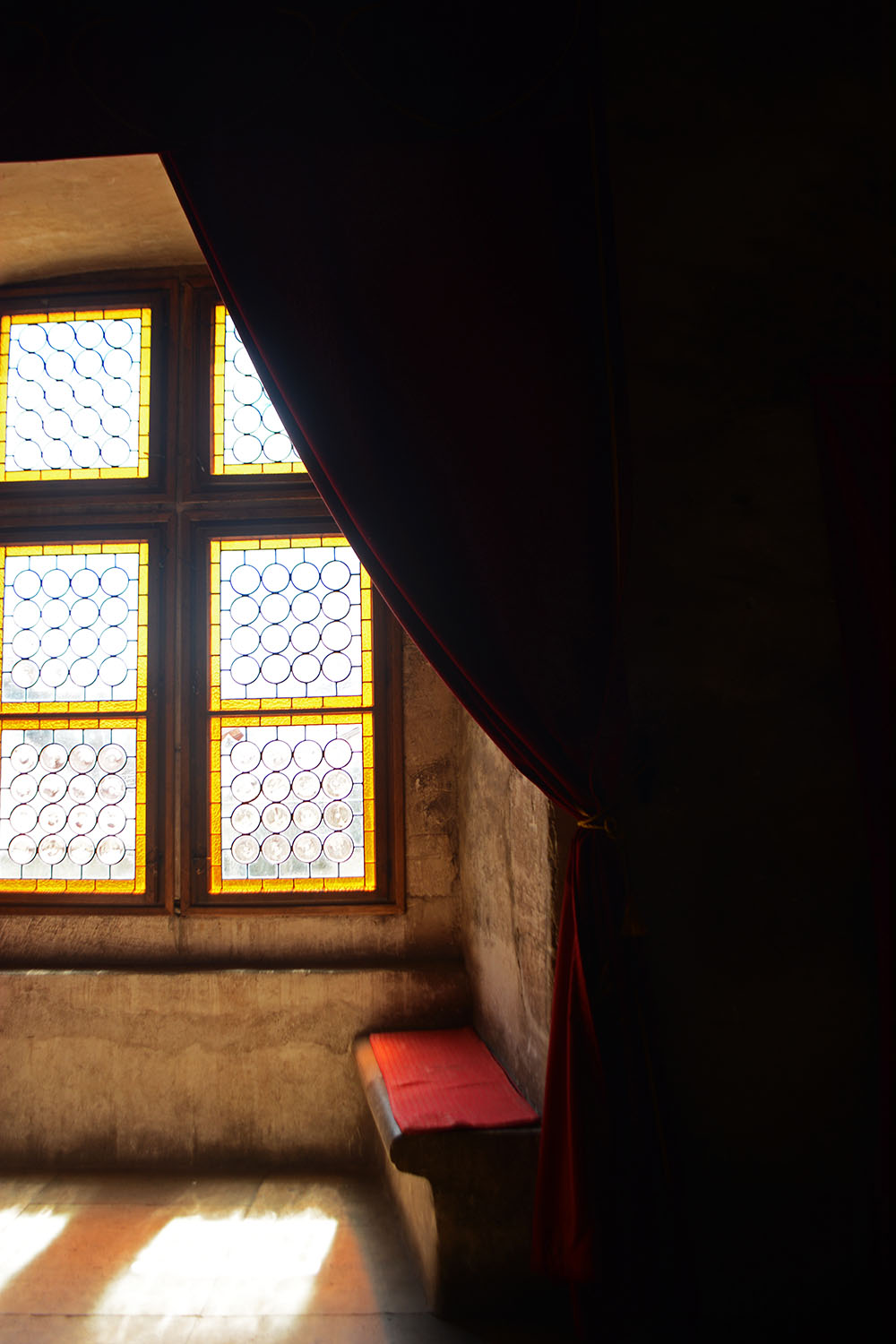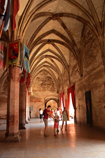 The castle is of course, as a Brit would remark, pretty. It feels very much like a castle-ish castle- there are parts from different periods, the newer ones obviously shinier and better preserved, yet it’s the older stone fortress part that gives a sense of real history. It’s also the place where you can escape the tourist infestation, for as a younger visitor exclaimed, it’s just a room!- and then he was promptly off.