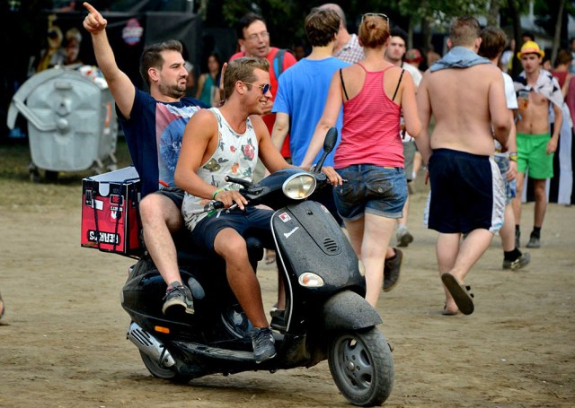 We did however leave her a bit ahead of time- and as on Sziget everything is upside down so no evil deed remains unpunished, we missed the confetti party which we had set out to see. Judging by the video some nice people showed us in the spritzer garden a bit later, it was a blast. I had prepared for Foals as a blast as well, but they took off a bit flatly, which culminated in the sound system giving up on them- a welcome brake for Yannis though, who immediately lit a cigarette and started hydrating. The poor man must have Hungary marked on his map as a red hot hell of fiery summer sun, as he was subjected to the same thermal treatment last year at VOLT as well, and he did sweat hell of a lot on both occasions.