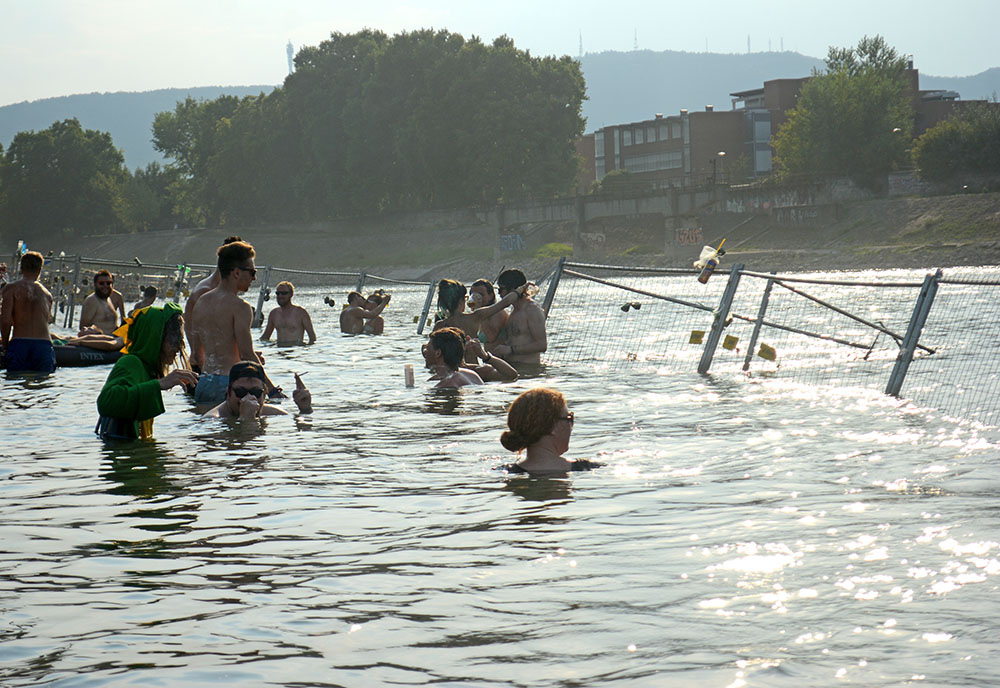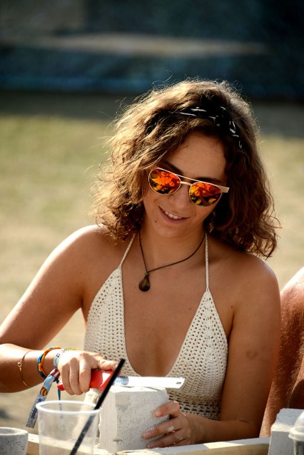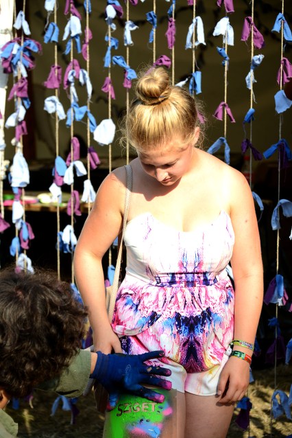 Suffice to say, we started the day in the NGO area, where we found further evidence that everyone on Sziget is secretly Belgian on the “which country do you come from?” pin board. Smug like scientists who just split the atom, we then rolled on outwards, towards the beach. Before reaching the cooling waters of the Danube, we also investigated the art zone, where quite a few people were braving the heat under a not completely hell proof shade and sculpting. Yes, sculpting, tiny chisels and all. As someone who has two left hands I was struck with awe at how after five days of Sziget madness some people still have the skill to make unicorns- they were the preferred sculptable item, as the location itself is called unicorn factory.
