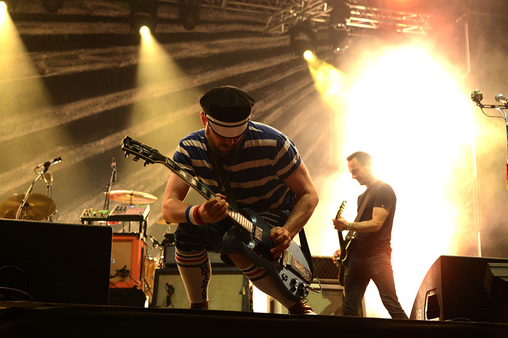 Before we comment on the two later acts, we must mention that local lads Punnany Massif, coming on at four, were perfectly okay, it’s just that the heat was so intense that most people could hardly focus on anything else than the moment when the water spraying brigade reached them with their life giving implements. Then someones called Hollywood Undead raged for the dying of the light, looking a bit silly in the process, as they are the most average copy of Linkin Park anyone could come up with. (I am again musing on how some bands cannot be anything else but very clever scientific experiments on manipulating people’s taste- and spending.)