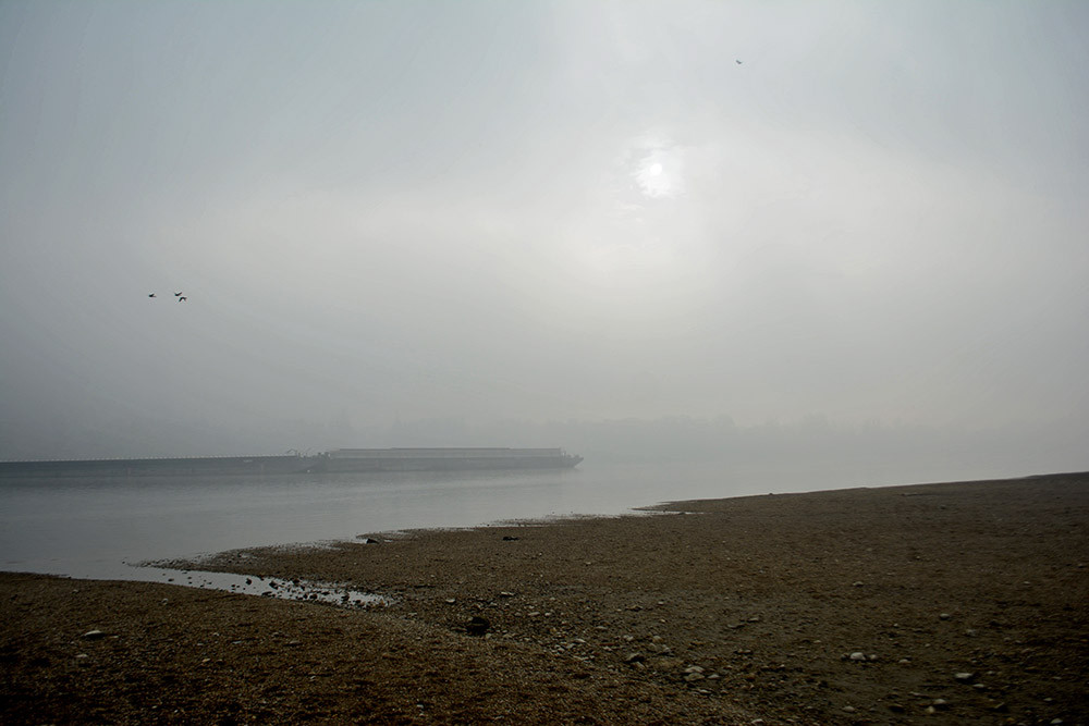 As a result of this we wandered off to the beach in something of a daze- Alice in Wonderland feeling reloaded, with the end result being an arrival to what could have very well been the surface of Mars when it still had water.The Danube is so low these days you can wade in to what in more plentiful days is almost the middle of the river, and listen to the ghastly calls of crows and seagulls (yes, I am being over-polite here, their noises sounded decidedly more sinister than a call) and get slightly surprised when a tugboat dignifiedly emerges from the fog. For some reason this actually felt like a perfect setting for a Jamie XX song, so here, a first name on my wishlist for next summer.