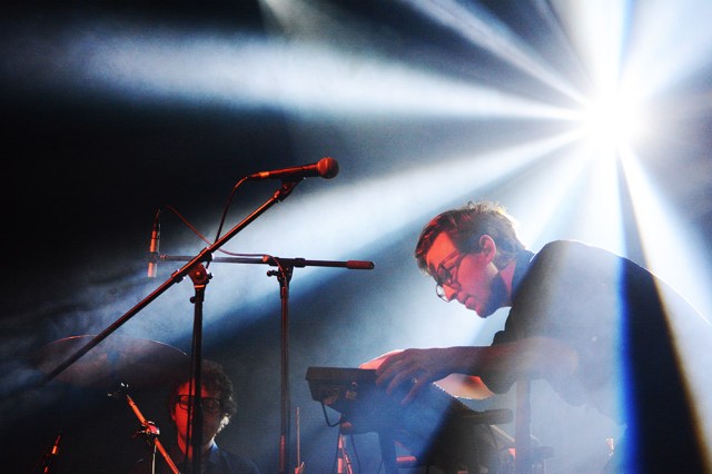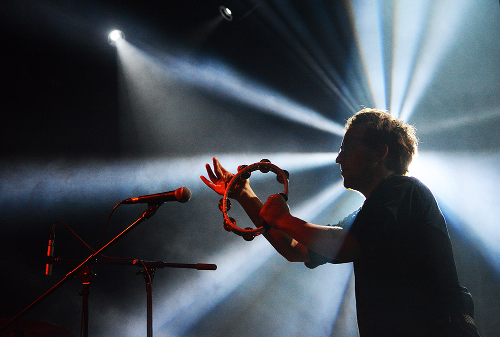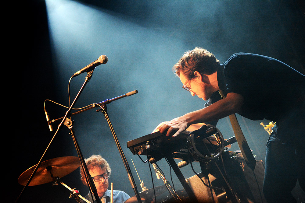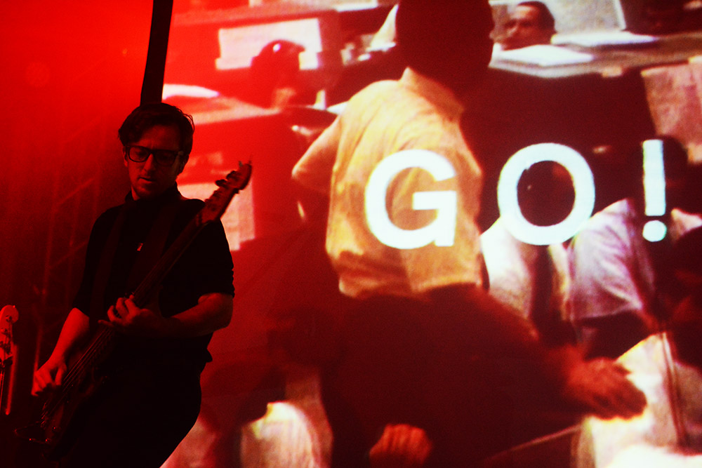 This gracious activity was brought to an end by the somewhat subdued appearance of Public Service Broadcasting, greeted by a couple of acid remarks related to their geographical haplessness. This was later replaced by the burning desire to find out whether they would actually sing or talk to us- the most basic of YouTube investigations would have already provided the answer, they didn’t.