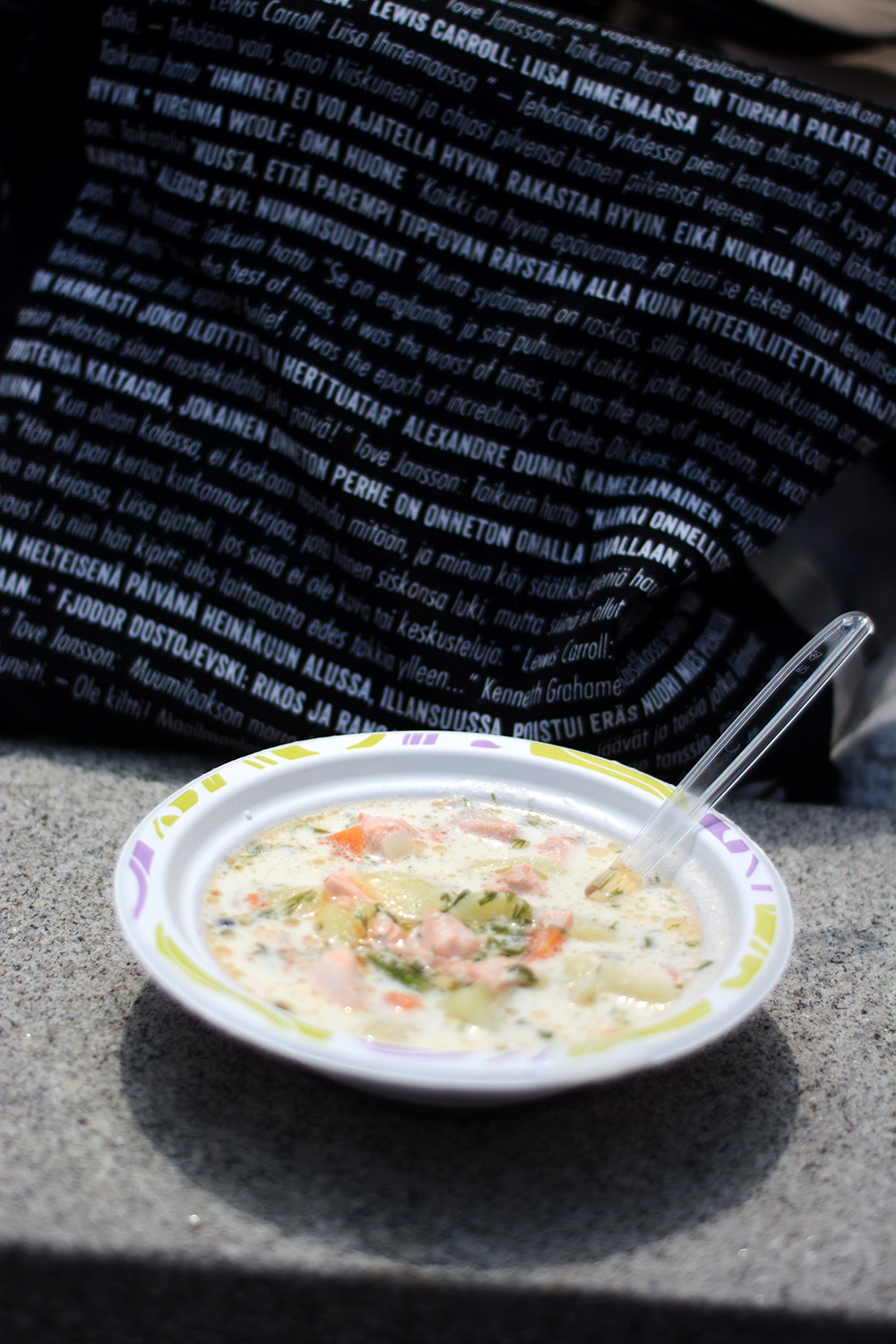 Other snippets of entertainment included a DJ, chalk drawing, treasure fishing and mölkky (one of those throwing stuff at stuff games for which the Finns quite naturally use small logs)- of these activities we cannot say much, however, because they were either age inappropriate or deemed to be too tiring after a serving of soup and dessert. I was however on the verge of buying an Angry Birds booklet, but I decided that collecting Panini stickers has exhausted my infantile quota for some time to come.
