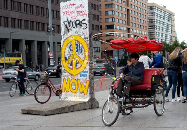Potsdamer Platz is another typical Berlin destination in that the context is much more important than what you actually get- which is a lot of glass high rises, a slightly confusing transfer hub to suburban rail lines, the Sony centre with people munching sausages before going to the cinema- incidentally, the Berlin film festival has its most important venues in this area, plus further bits of the wall. Between the two world wars, the square had been one of the busiest intersections in Europe and an iconic centre to the city’s nightlife, akin to London’s Piccadilly Circus. It was then almost entirely destroyed during the WWII air raids, and became basically deserted when the wall cut it into two. Potsdamer Platz was also the stage of Roger Water’s monumental rendering of The Wall in July 1990. It’s rundown version is also featured in my pet Berlin love, you guessed right- Der Himmel über Berlin.