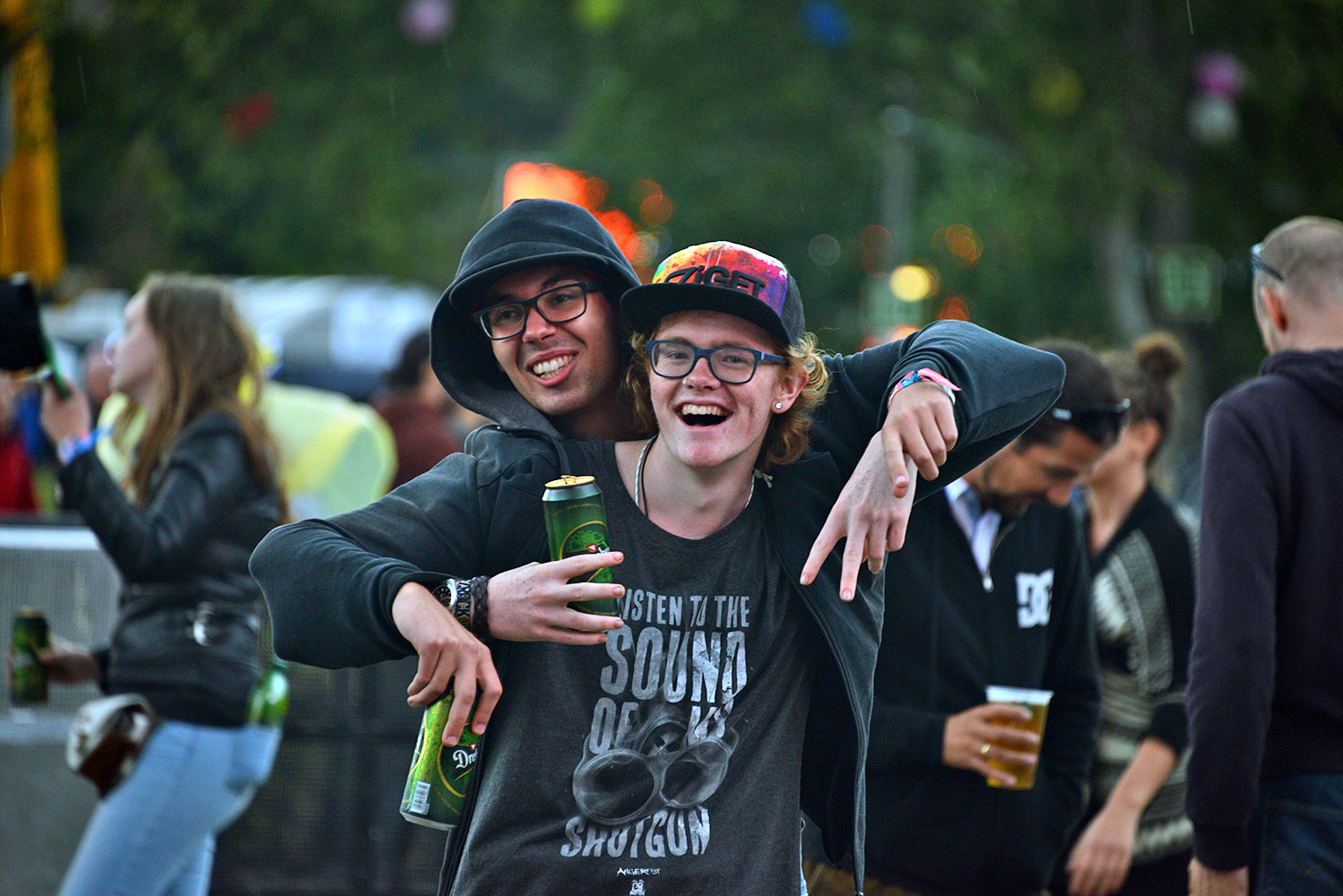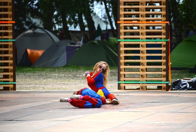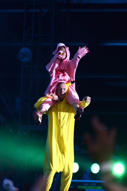It might only be a strange and fortuitous coincidence, but I can think of several examples of rather violent and insistent rain stopping right before a concert which then turned out to be quite awesome. The first time it happened I was borderline convinced Bono could control the elements, but we are all children once, then we grow up and start liking serious adult things, like two South Africans, one of them really amazingly tiny, in Pokemon onesies (among other things). Die Antwoord started out as mostly a niche phenomenon- the music itself a weird concoction of rave and rap, delivered either in totally bonkers English or Afrikaans, plus a strong visual element built on South African zef culture, which by now we’ve learnt to mean trashy and uncool. But of course the whole point is that Die Antwoord made zef ridiculously cool, so much so that on the very day of the concert Yolandi Visser went on an Instagram rant accusing Suicide Squad’s creators of appropriating their style and my only input on this is that when I saw Harley Quinn’s short shorts in the movie trailer Yolandi was the first thing that came to my mind. Okay, I have a second input too: Yolandi wears hers better.