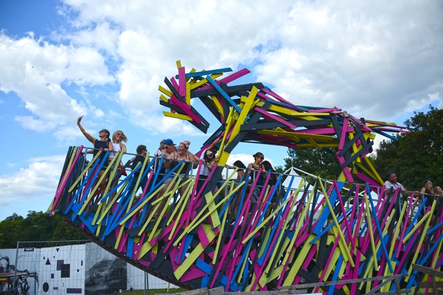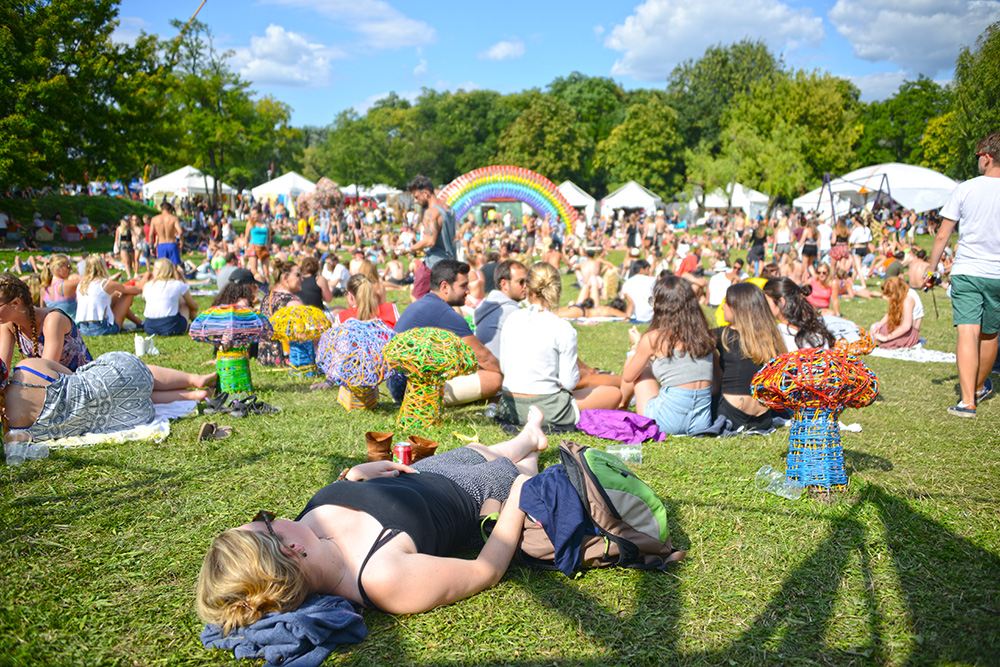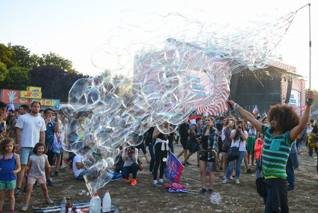 The day to come is however slow to start, so we have plenty of time for a little voyage of discovery into corners of the island situated outside of the usual Bermuda triangle of Main Stage- A38 Stage- World Music Stage. First up is the NGO island, where we are happy to see the rabbi still dispenses useful advice for ten forints, then we touch down at the Magic Mirrors venue, which is pretty packed for an afternoon film showing, while in the Colosseum people are still dancing like it’s 3 AM- which is most natural since to some Sziget is one whopping week long 3 AM. Those who feel ready for something more challenging are absorbed in the kind of Art Zone activities that require the talent, ability and skill which we utterly lack, so we’re on to the Sziget beach, which is the place to lounge if you’re a baby sloth disguised as a Szitizen. Sadly this year the Danube’s level is too high for an actual beach to be set up, but there are still plenty of people loitering around Cöxpon’s bean bags.