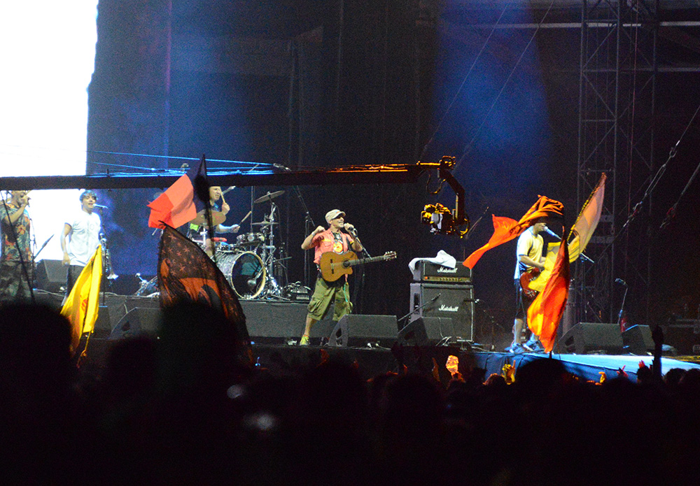 Next up in front of the main stage, the only time of the festival when waving a giant flag of whatever in front of your stupefied neighbours definitely won’t get you labelled as a dickhead, because we’re having the now traditional 7 PM fiesta. This year’s flags come in some brand new fashionable colours (I am totally in for the mint green one) and then we’re all set for Bastille. Though that might be an overstatement, since the last time they graced the island we were not at all enamoured by them and have not spent any considerable length of time since trying to like them. Bastille, however, seem to like playing Sziget and as the gig progresses we come to the slightly shocking conclusion that their charm campaign worked and they might just have grown on us. I am therefore typing this to the sounds of Things We Lost in the Fire, one of those things apparently being a dislike for Bastille. However, given that I am misanthropic enough to need a nice healthy dose of hatred and disdain, I will now be looking for a new act to utterly dislike, and David Guetta is just way too easy as a target. The challenge is on. (Because this bit of the review is totally subjective, be informed that Bastille are from England. play a sort of indie and their second album is due to be released this autumn.)