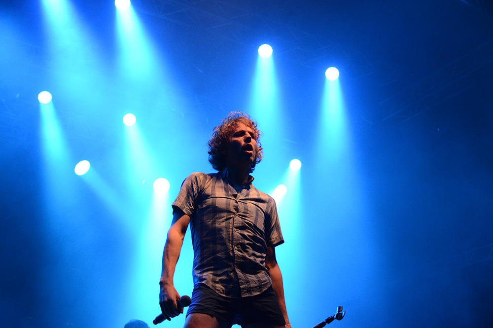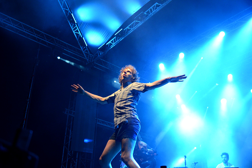 After loitering around the island and witnessing a small Sziget miracle, namely the lately decidedly un-lazy co-photographer of the blog consuming vegan food, we were ready for some !!!, as much as anyone can ever be ready for them. For I do resent the name- as you can see I am super objective at judging artists only by what’s relevant to their craft. But you just keep having to be silly and go chk chk chk when talking about them, or alternatively maybe try to launch into producing the sounds as glottal stops and forever alienating the few friends you still have left. They’re also the kind of band whose rather tame dance punk will always be entertaining and a bit camp, not unlike lead singer Nic Offer’s compulsory shorts, but will never move mountains and they do stay true to form this time as well.