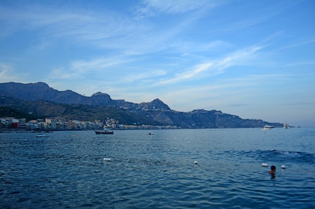Thus we learned from a completely bewildered local that taxis are unheard of in Letojanni- naturally, since everyone is aboard their own private minute Fiat, and we should just pray to the Madonna that late buses are still running as during high season. They were- or weren’t, since the bus driver, equally bewildered by our presence gave us a ticket which had ‘Bus 99-Infinite’ written on it and hoisted us up to Taormina, from where we could take the normal connection back to Giardini Naxos.