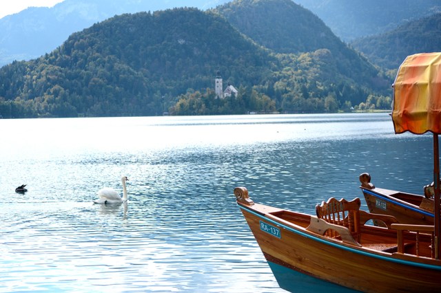 The lake and its small island welcome you right by the main road, in a rare case of a touristic attraction which looks every bit as good as the postcard. The sight is often complemented by the tolling bells of the island’s church, which apparently bring good luck and are thus industriously harassed by the visitors, who can reach the island by taking one of the nicely decorated boats going by the name of pletna. Another typical Bled sight is a furiously approaching swan, though I must confess to finding swans kind of overrated: they’re nothing but mean geese with a superiority complex and I am therefore much more pleased to encounter a raft of ducks peacefully pottering about the lake.