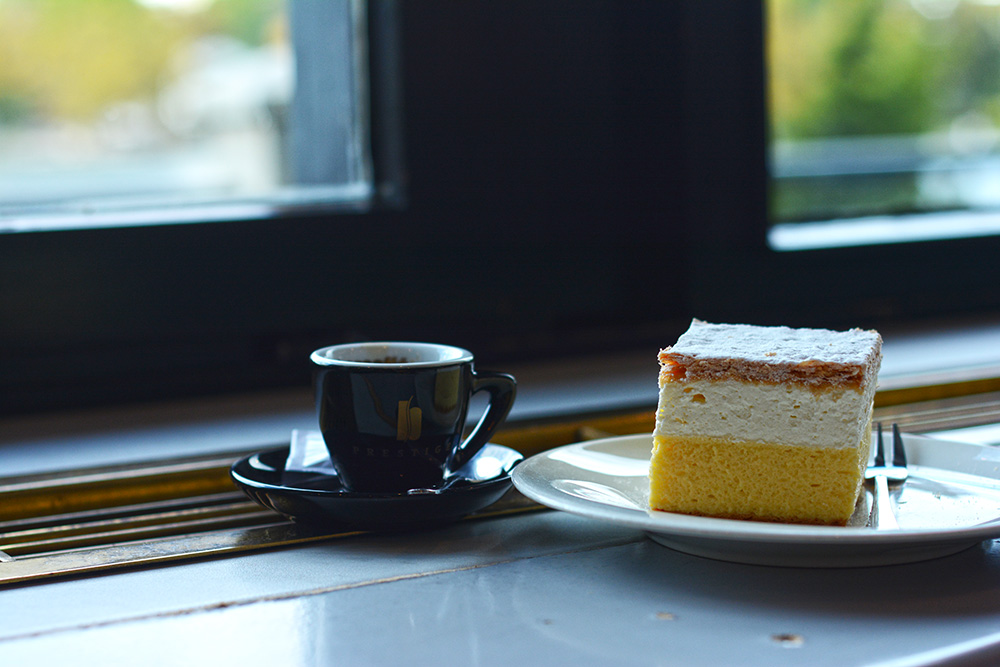 There are plenty of options for accommodation both in Bled and in the nearby villages- we can warmly recommend Hotel Lukanc nestled in the tantalizingly picturesque village of Selo pri Bledu, only five minutes’ drive from the lake. When it comes to food, Slovenia excels by not excelling at anything- located at the meeting point of Balkan, Mediterranean and Germanic cuisine, it offers a fair range of dishes from all three without any particular highlights. Bled itself is famed for a version of the central European Cremeschnitte, pioneered by Serbian-Hungarian pastry chef Ištvan Lukačević, locally known as kremna rezina- the cake can be found on the menu of most Slovenian restaurants, but the ‘original’ edition is the one served at Hotel Park on the lake’s shore.