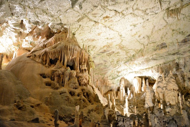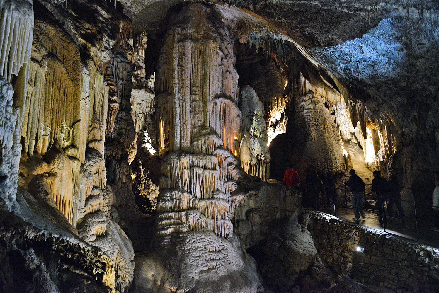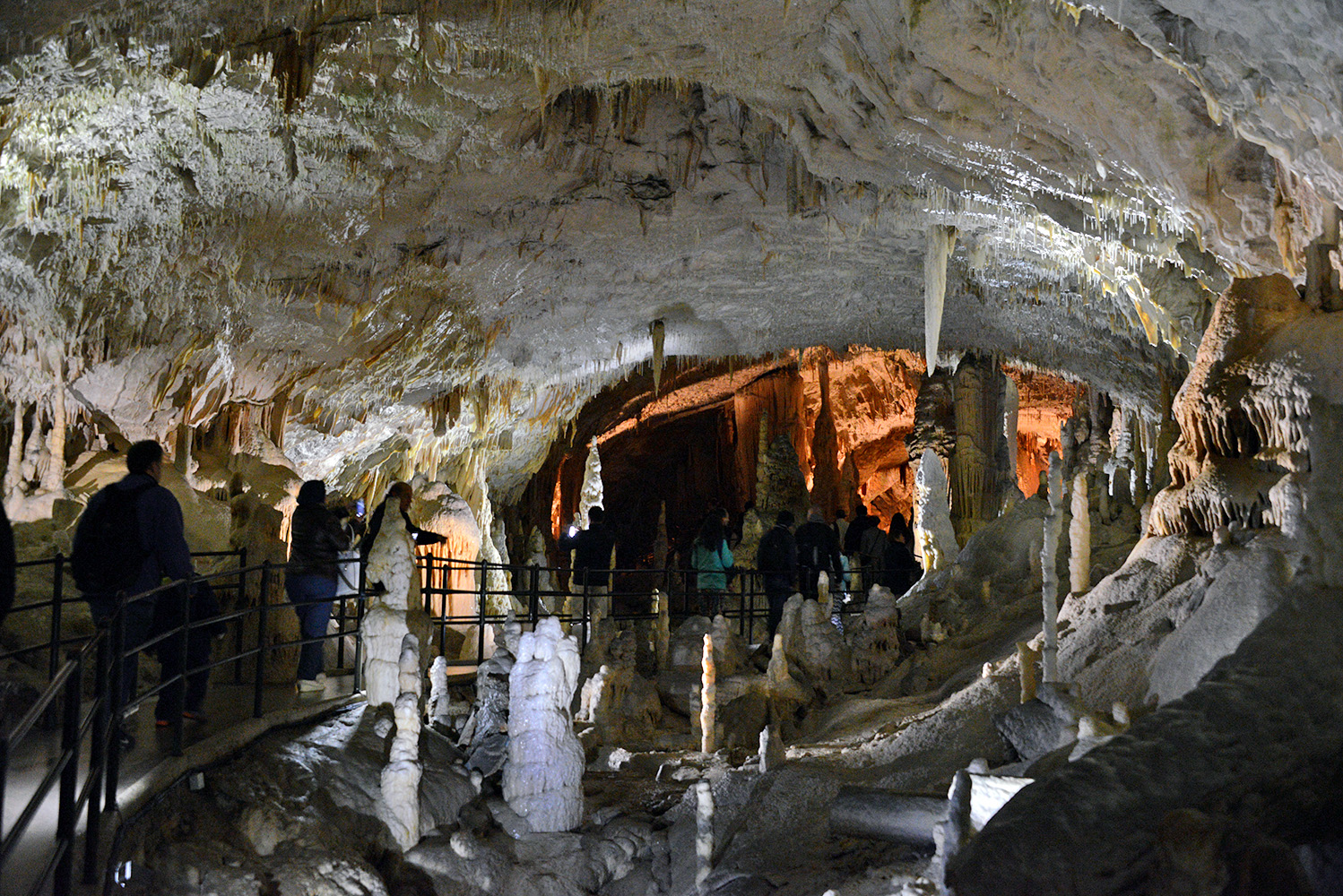 While a lot of karstic formations might not be overly inspiring to the uninitiated, the superstars of the landscape are the caves, with the Postojna cave system, measuring 24,120 metres, taking the palm. These days the cave functions as a clockwork perfect system of touristic entertainment: after a rather severe looking cashier hands you the ticket, you are ushered through a complex system of restaurants and souvenir shops to the entry of the caves, where tours start sharp on the hour. Once released from the dark underbelly of the earth, you may indulge in the pleasures of a decidedly canteen-ish restaurant- but strictly between 12 and 3, those lacking in discipline are left to chewing nuts and biscuits amongst the stalactites.