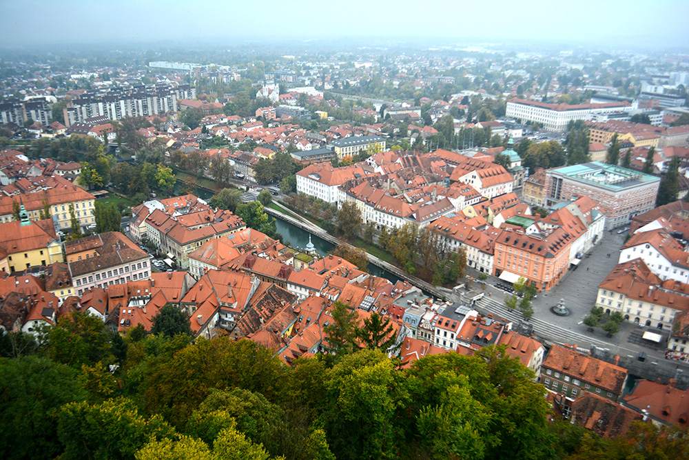 Most travelers have probably encountered castles far more exciting than the one in Ljubljana, but yet again one has to be impressed by the marketing flair of Slovenians: every bit of the building is nicely touched up and used for some purpose, even if it’s an odd exhibition or a Puppet Museum- though, frankly, the Puppet Museum is far more interesting than initially thought and I would warmly recommend it to anyone- bar perhaps some of the scarier dolls. According to our informative booklet (Slovenians also love those and have them ready in several languages at most touristic attractions), on a clear day you can see about a third of Slovenia from the castle’s tower. However, our day happened to be a rainy and foggy one, which was only half a pity, because there’s an unexpected charm in mist rolling over the yellow and crimson hills embracing autumnal Ljubljana and that’s somehow befitting the entire city as well- you start liking it when you least expect it.