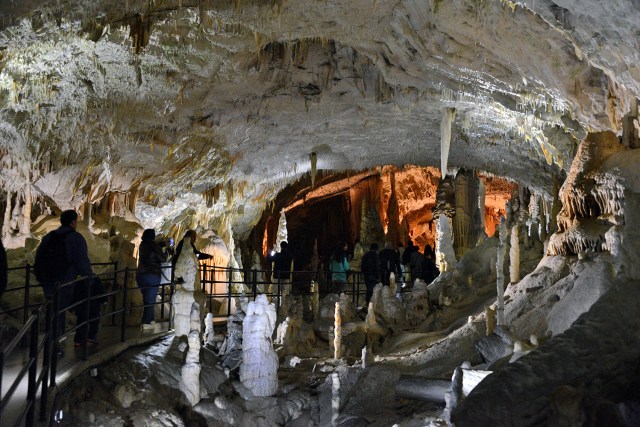 The efficiency is hardly surprising- the caves were a touristic attraction from the 19thcentury, with rails being laid in 1872, electricity being introduced in 1884 and several VIPs of the era, among them Emperor Francis I and Archduke Ferdinand, being given the grand tour of the premises. Today the tour lasts an hour and a half, with about 1.5 kilometres done on foot, and another 3.5 by train. Guides speaking several languages are provided for each group, lest some inquisitive visitor potter away into the eternal darkness. Besides admiring the eerie landscape, one can also get acquainted with the so called human fish, though they are actually salamanders whose official name is olm or proteus. The human fish moniker was given to them due to their white skin, similar to that of Caucasian humans, a result of their prolongued inhabitation of lightless places.
