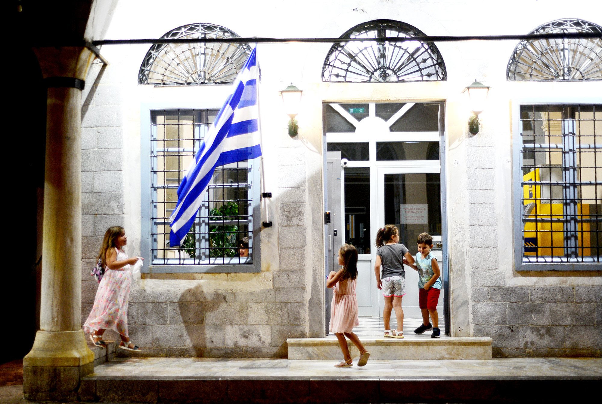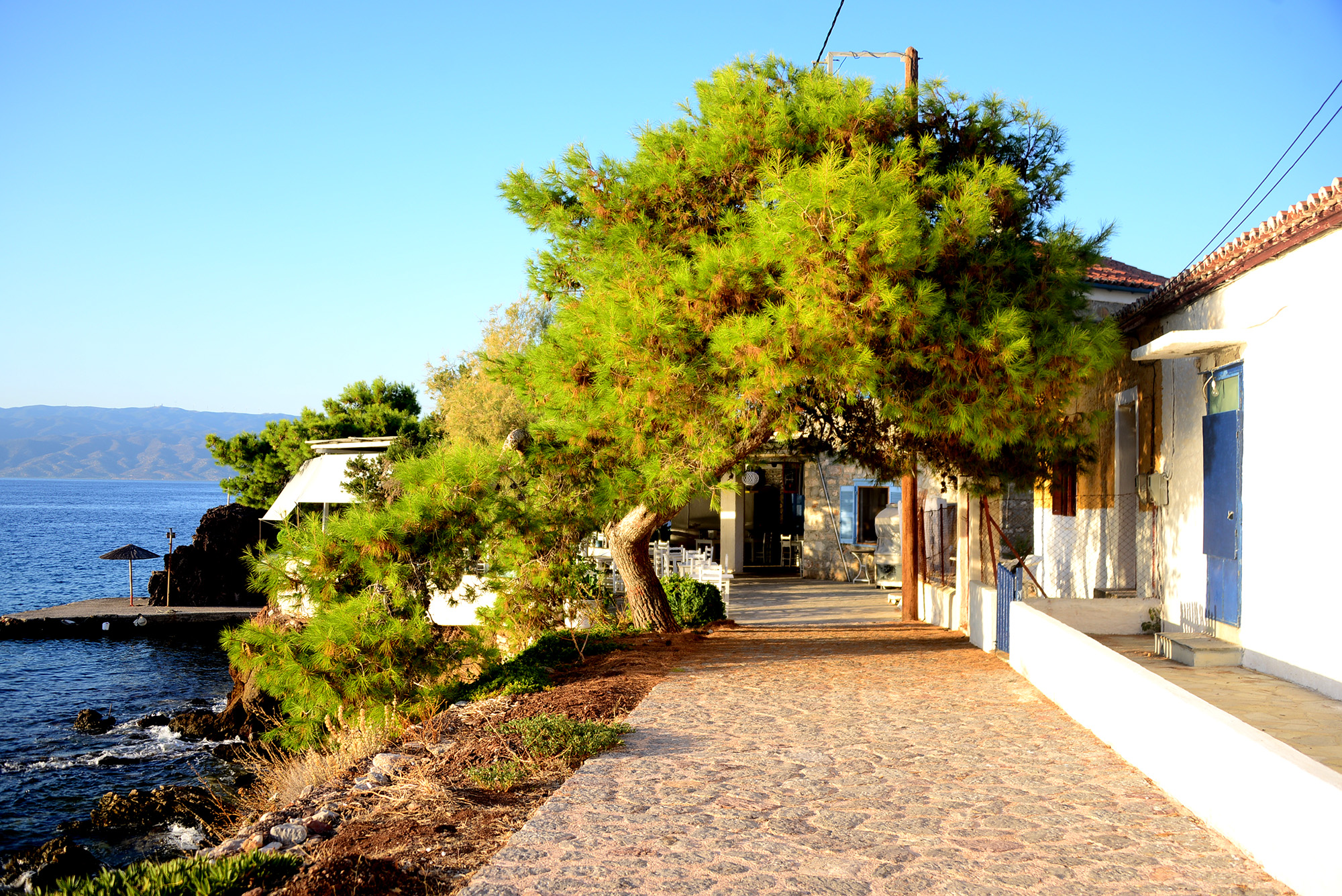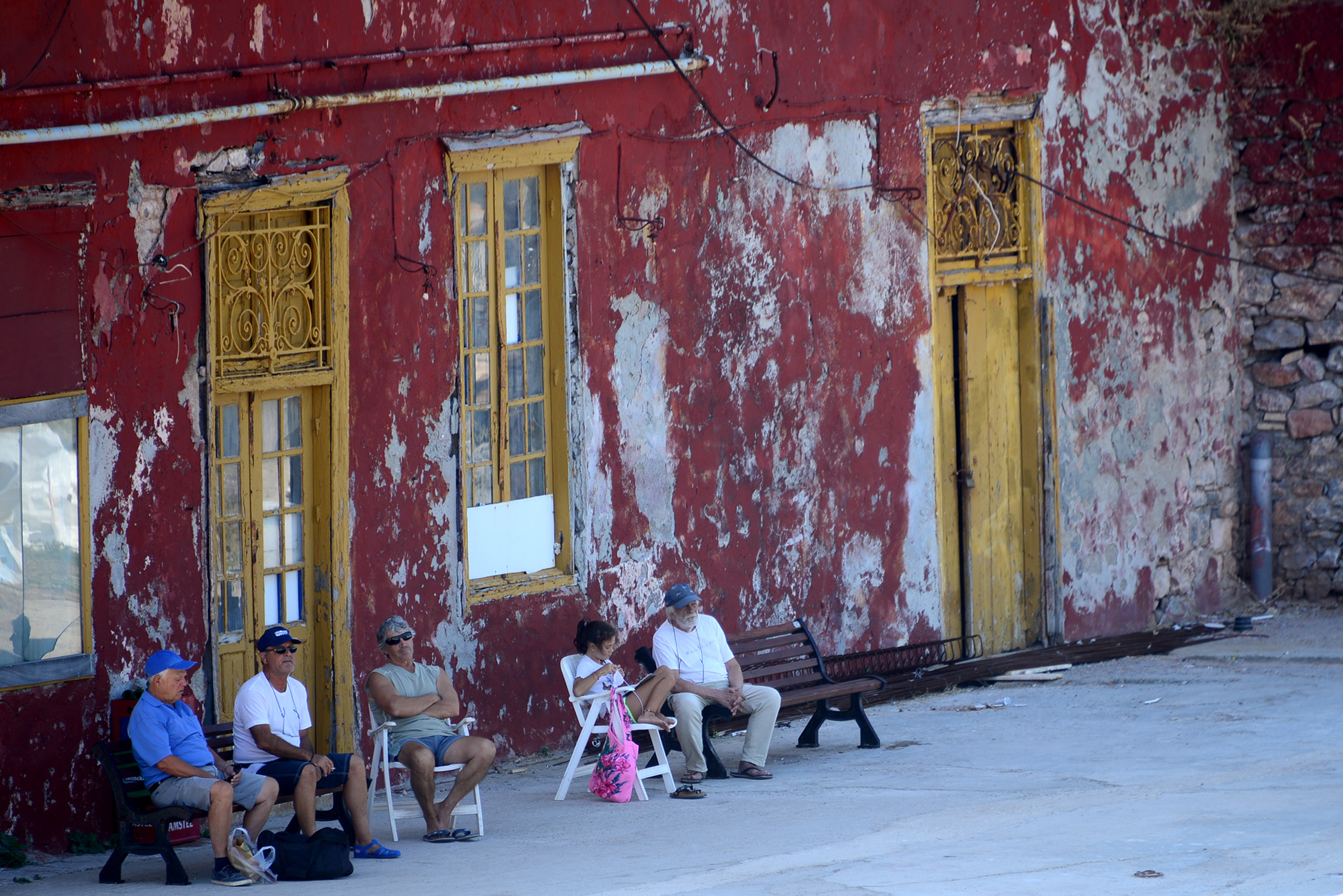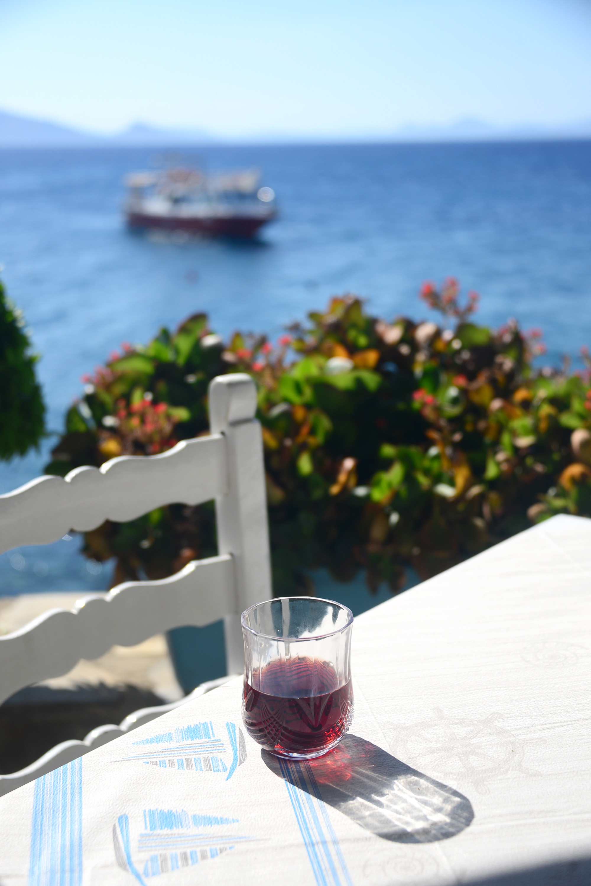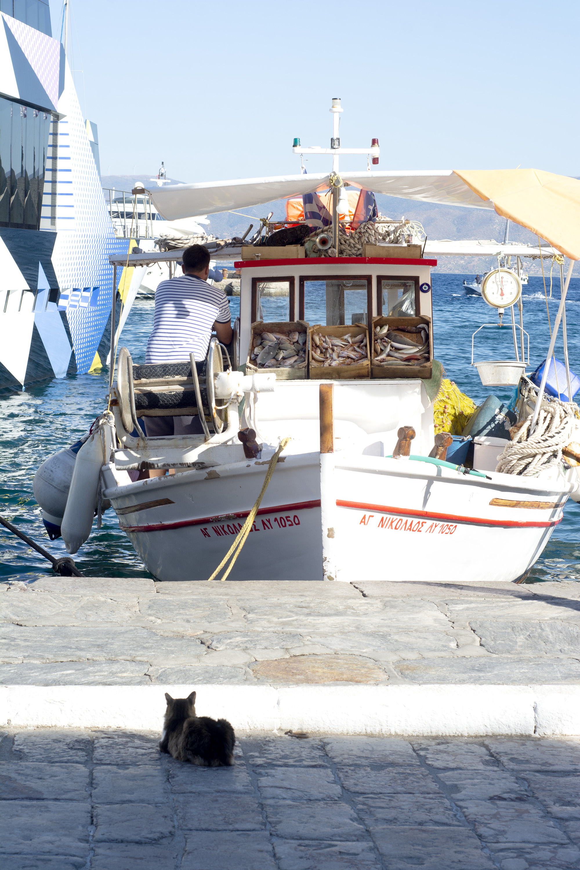 Part one of the plan is the morning meal, and that will be had at Isalos by the port, their two person Greek breakfast being sized more for a conquering army. As I soldier through the hearty omelet, I sense pressure on my thigh, first delicate as a snowflake landing on your eyelashes, then slowly growing in intensity and culminating in the sharp pain of a half extended claw. The owner of the claw is a formidable ginger cat I nicknamed Kokkinos after googling the word for red in Greek. Kokkinos is not really hungry anymore, none of the gargantuan cats of the port really are, especially after the arrival of the day’s first fishing boats, but he is serious about his job, which consists in being equally angelic and unbearable at any given moment. Suddenly, however, he abandons me with an athletic leap. A bundle of newspapers has startled him, landing on the shore with a loud thud. It is followed by packs of cigarettes, carts filled with fruits and vegetables, IKEA boxes and a group of people disembarking with that mindbening array of luggage you can only ever find in South-East Europe. My eye rests on the sign of a nearby government office, I painstakingly decipher the alphabet, so alien and familiar at the same time: Elliniki Dimokratia, the Hellenic Republic, but for naming that they use the word democracy. The bundle of papers had been brought by a boat called Freedom. Freedom of the press, I smile as I sip my coffee.