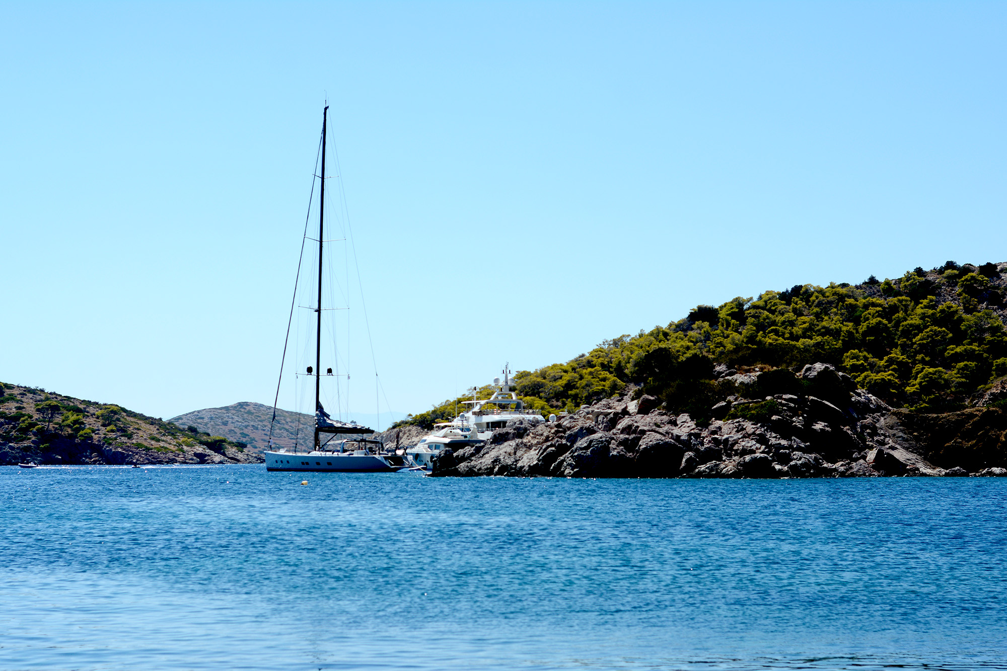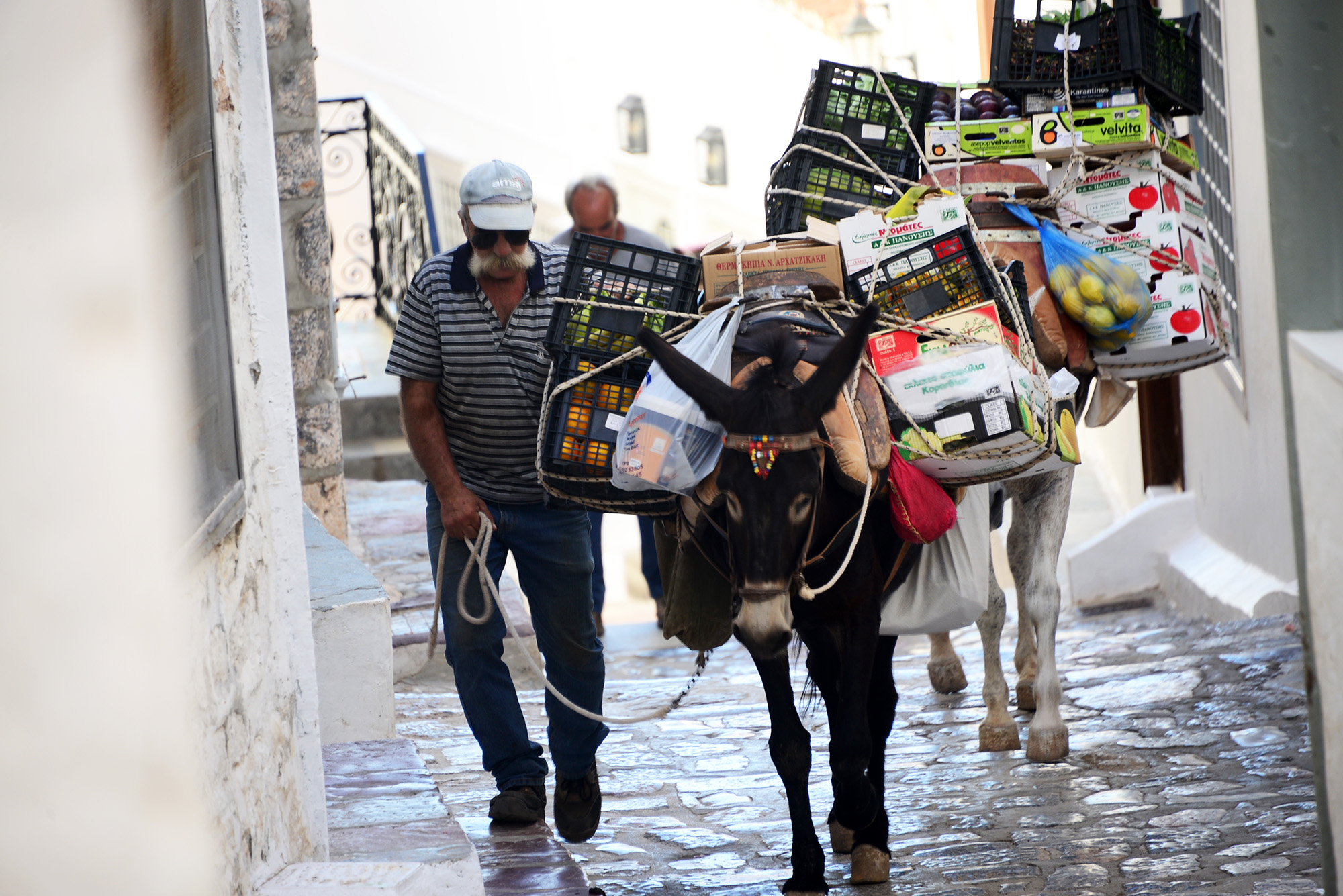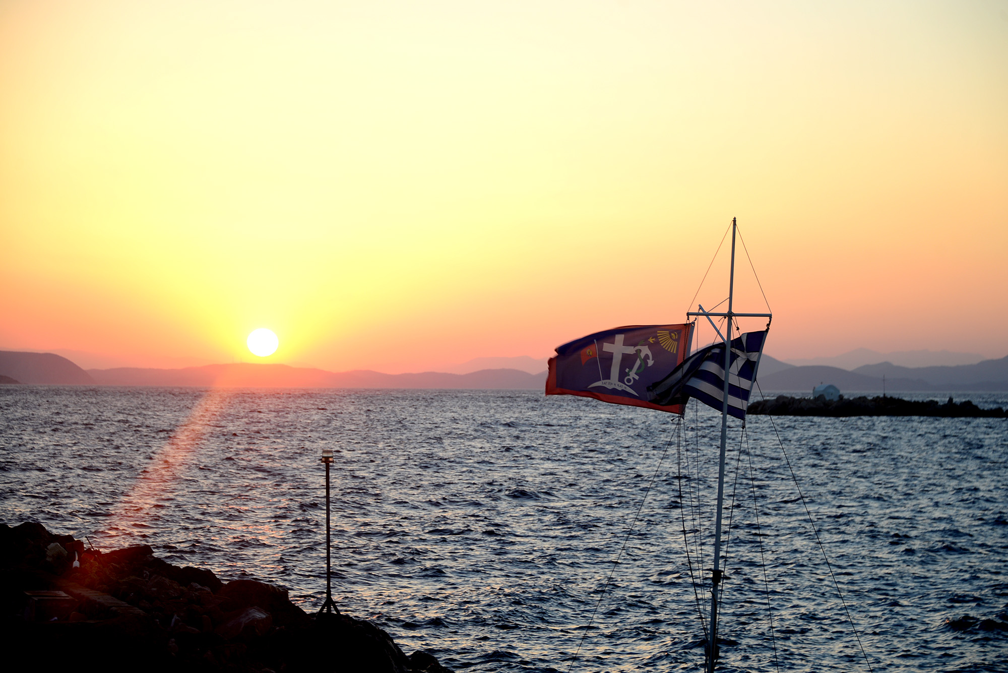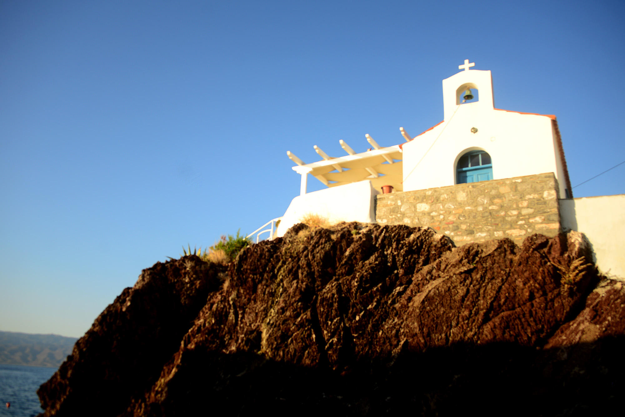In the small port of Kamini men fiddling with their komboloi dwell in permanent rest and conversation, migrating from one row of benches to another according to the movements of the sun and shade. Everywhere you look you see churches, perched on rocks, on small islands between Hydra and the mainland, along the sunburnt road. There are around two thousand people on the island and according to certain estimates, up to six hundred altars, churches and monasteries with immaculately whitewashed walls, woodwork painted in deep blue, the flag atop them an embrace of the white and the blue, the ornate Byzantine crosses catching the rays of the sun and the moon. There is another flag too, that of Hydra itself: an anchor, a cross, another flag within the flag (flagception, pardon the pun) and the Spartan motto of ‘I tan i epi tas’, roughly translated as ‘Come back with your shield, or on it’, the kind words mothers would utter to their children before battle, preferring them dead than defeated. Definitely not faint hearted, them Spartans. If you wonder why the island would use a Spartan motto, we could launch into a very convoluted historical backstory or simply mention it’s pretty close and ancient Hydra was therefore closely connected to it.