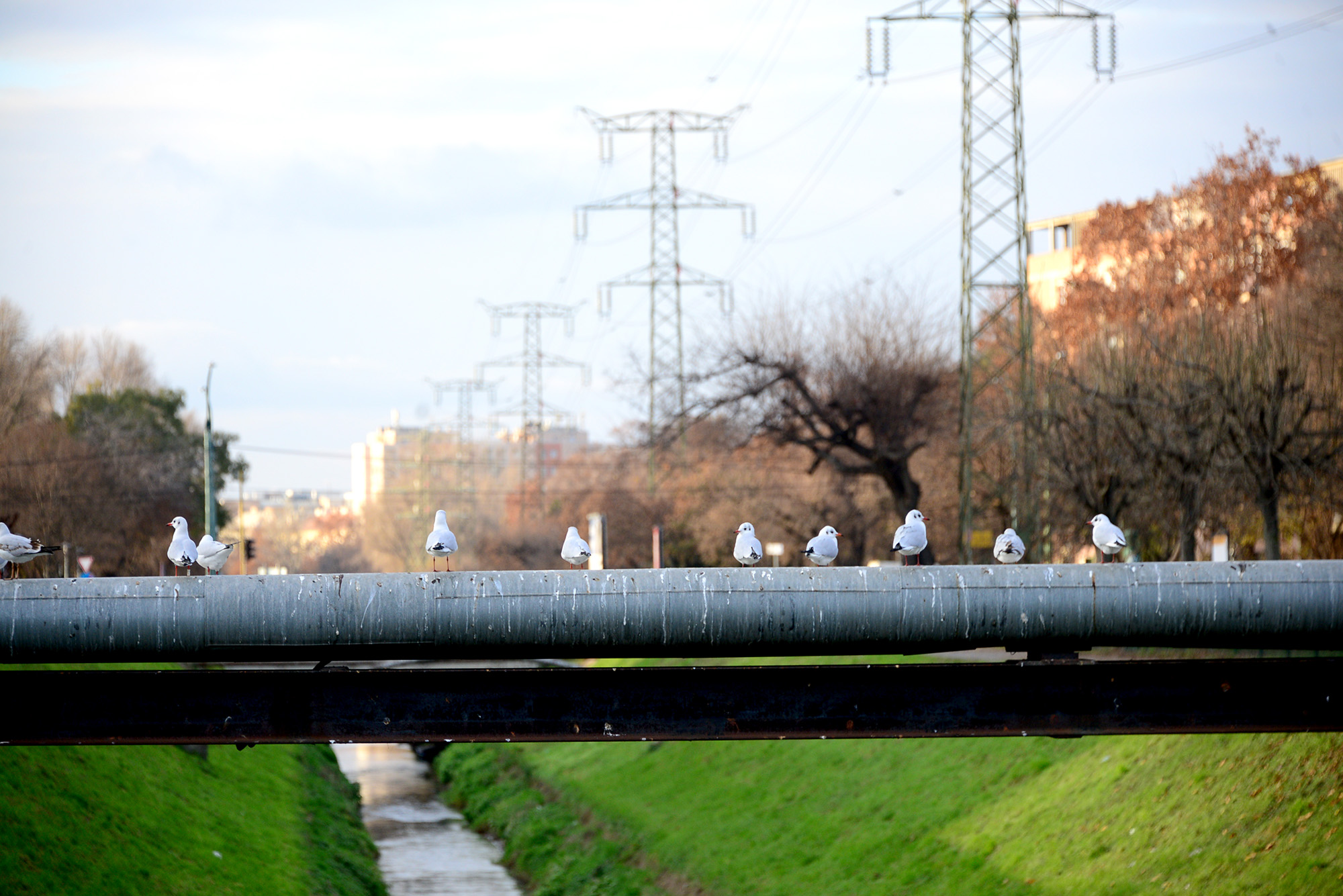 But at least we had the patak. I don’t really remember the first trip to the Patak (I shall capitalise it, as by now it has become a concept, rather than a simple stream of water), I can only assume that we headed towards it because it was there, far from the madding crown, a thin blue strip on the map of the city. Its full name is Rákos-patak, its source is near the town of Gödöllő, its width a maximum of 3 metres in ambitious places, its length a mere 44 kilometres, most of it through districts XVII, X, XIV and XII of Budapest. Many of these districts have neighbourhoods with the Rákos prefix in them, known collectively as ‘Rákosborzasztó’- ‘Rákosdreadful’, a dark underbelly of the city teetering on the edge of the decrepit, the boring and the slightly ominous. Rákos itself means that which has has/contains crabs, but all current descriptions of the stream insist on mentioning that it no longer harbours any significant wildlife. That may be true when it comes to crabs and fish, but our repeated expeditions have informed us that Rákos-patak and its environs are home to ducks, seagulls and well fed rats, plus a plethora of domesticated creatures from the class of the ‘diminutive ankle-biting suburban dog’.