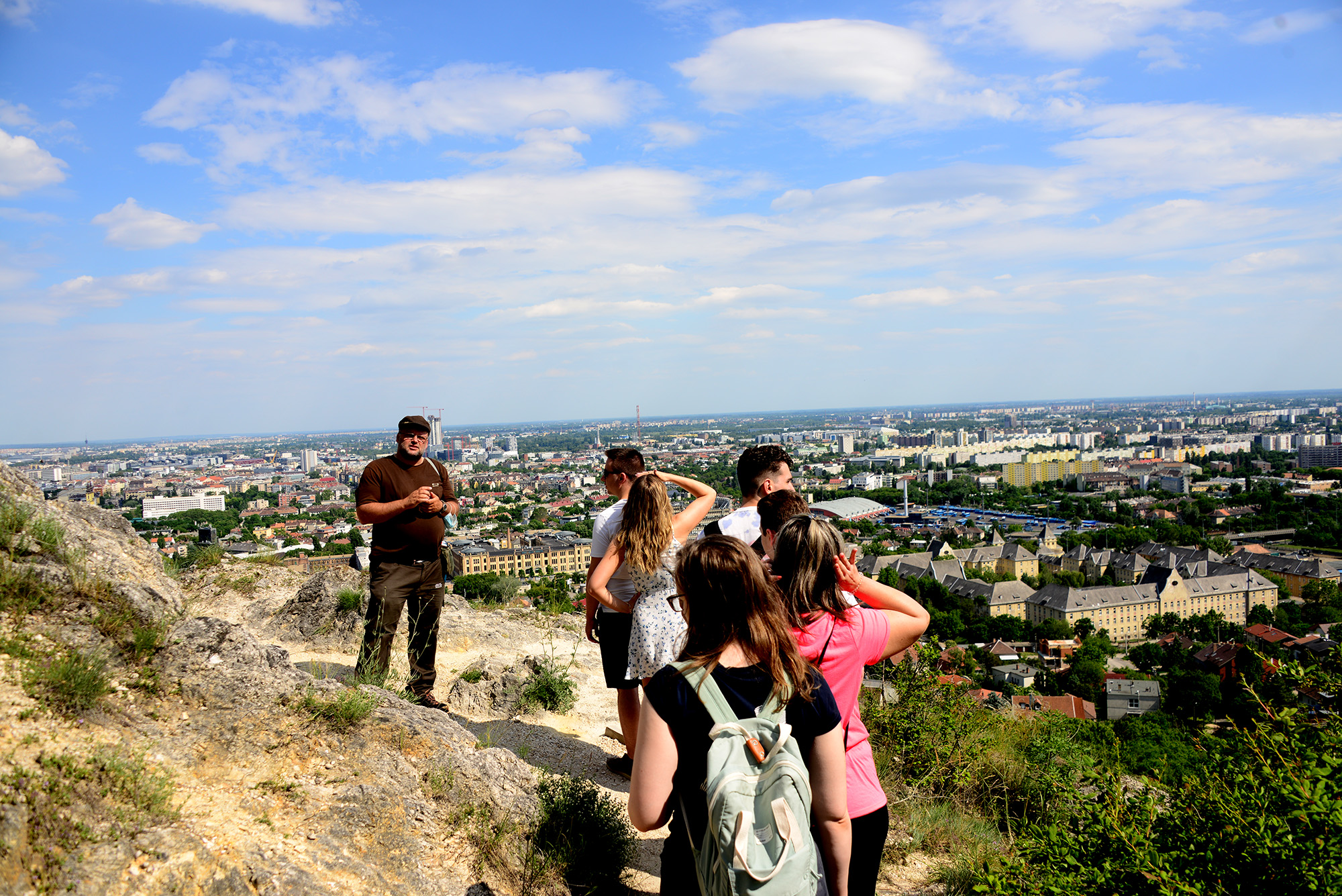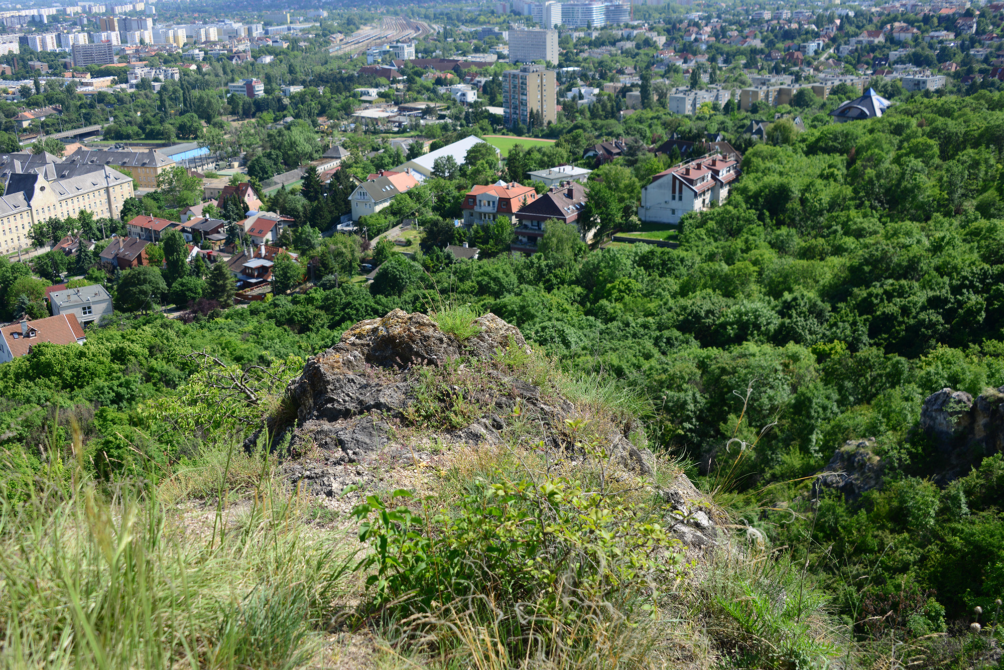 Right next to the ephedras we were presented with one of the attractions of the hill, the rocky outcrop where the reserve’s elusive foxes like to take dumps in what is probably the toilet with the most spectacular view in the whole city. On clear days, one can see as far as the factories of Százhalombatta and the edges of the North Hungarian mountain range. Considerably closer to the hill, the BAH interchange reveals itself as part of a road that existed in some form since Roman times. Snaking up along the Danube, it connected the city of Sirmium (close to what is today Sremska Mitrovica, in Serbia) to Aquincum, the Roman precursory to Budapest.