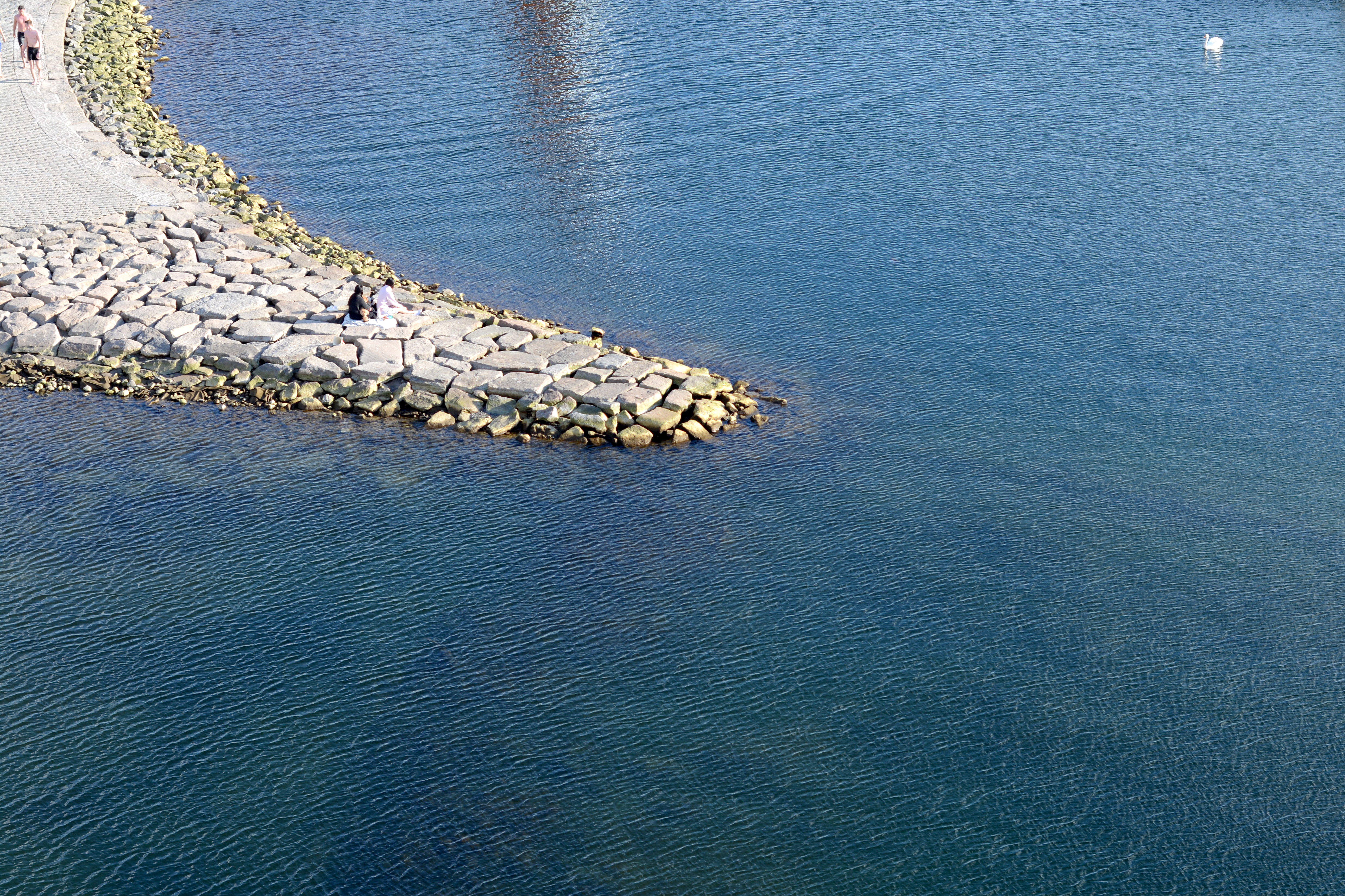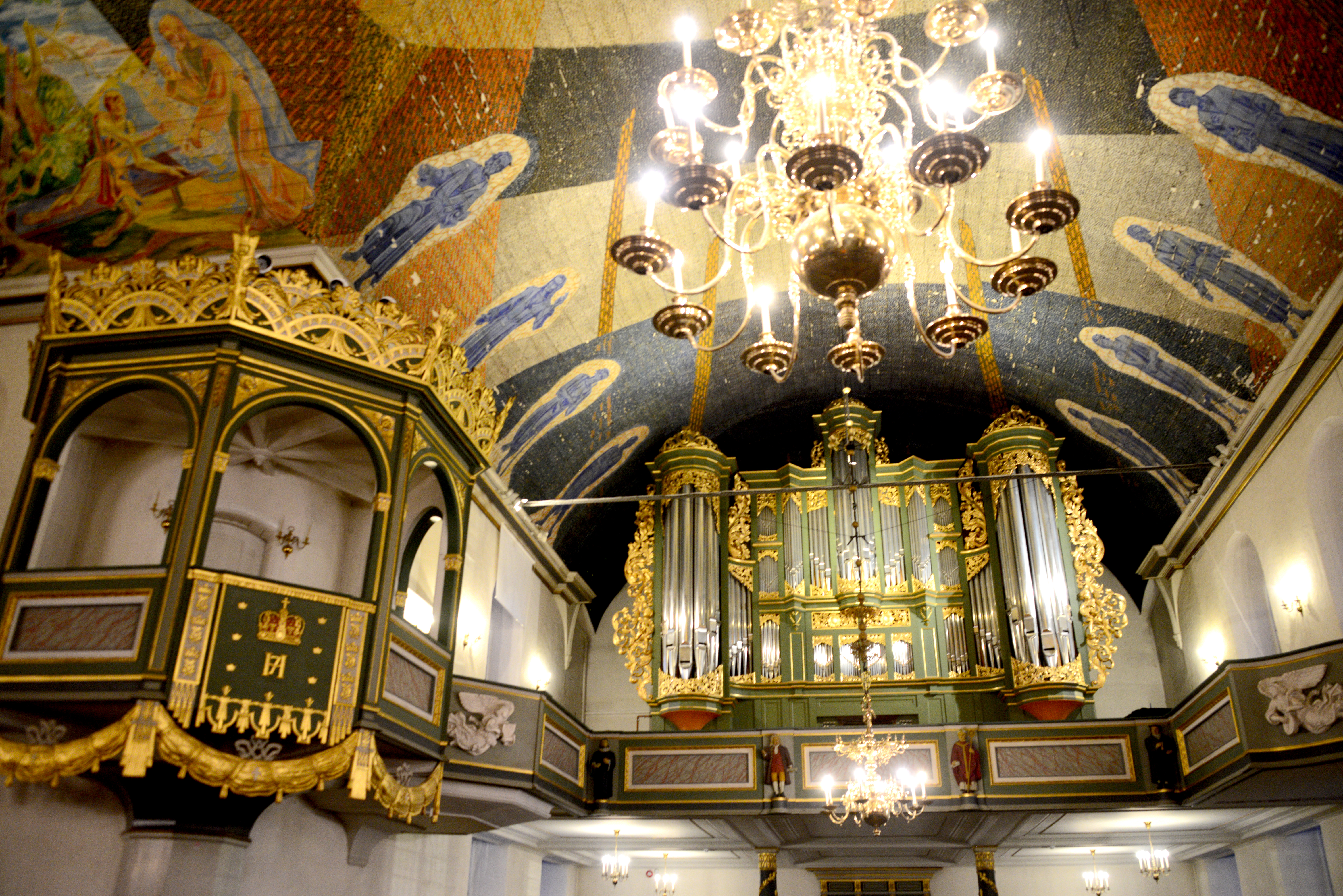 We walk up to the rooftop of the Opera in a slight daze, I remember this light from how I’d seen it in Finland, I’d tried to describe it to a friend and completely confused him by saying there’s simply more of it, not that it lasts longer, but that it seems that more of it is condensed in every cubic metre of air. I shouldn’t think lofty thoughts on uneven terrain, though, and I trip over a sharp edge, in spite of the many warning signs beckoning me to mind my steps. I am almost fully composed when I notice what must surely be a person swimming in the sea. The Sørenga Sjøbad is packed with sunbathers and some of them brave the cold waters for a dip. I’m not really jealous until I spot a floating sauna. Long limbed blonde aliens sipping what look like Aperol Spritzes aboard a superbly designed contraption that hosts a capsule of deliciously hot air. These people know no shame, and I am in love with everything I see. The ceiling of the cathedral looks like something designed for a soothing moodboard, dark blues, oranges with a touch of gold meeting in an elegant pattern. Perhaps there is a god, more of a spirit of the world, that lives in well made things.