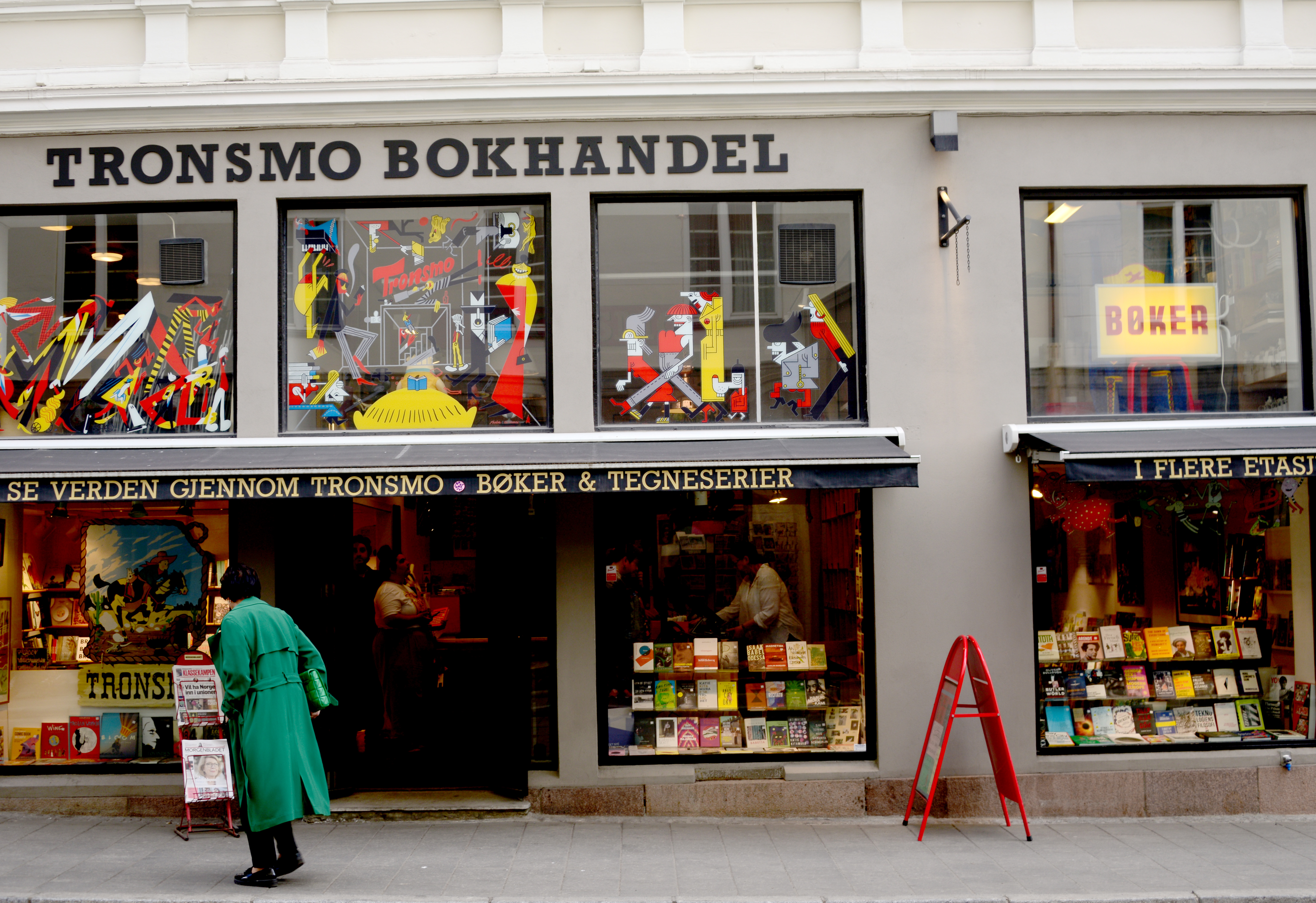 I assumed Oslo bookstores would be no great danger to me, since I don’t speak the language, but they are. Little corners of heaven, where all I need to do is not succumb to temptation. Practice temperance. They all stock English books, and many have solid collections of French, German and Italian books too. I flick through some Knausgaard in the original, recognising passages in Autumn I’d read on one of those rattling Eastern European trains on my way to Belgrade, thinking I should really visit Norway, since I identify with so much of what a middle aged Norwegian man writes about, scary as that may be in the grand scheme of things. Now I am here, already in the possession of a heavy bag from Norli when we arrive to Tronsmo Bokhandel, where the literature section is sorted by the writer’s region of origin, and not the language of the book itself. I spend ages studying the spines, flicking through Danish or Spanish editions of authors I like, just to get a feel of what the text behaves like in another language. The blog’s industrious co-photographer is one floor down, admiring rare comics, yet to discover the world of wonders that is Outland, a labyrinthic basement packed with comics, manga and board games. The people perusing the shelves in the vast Harry Potter section look like they might live there and only go up for sun and fresh air every now and then.