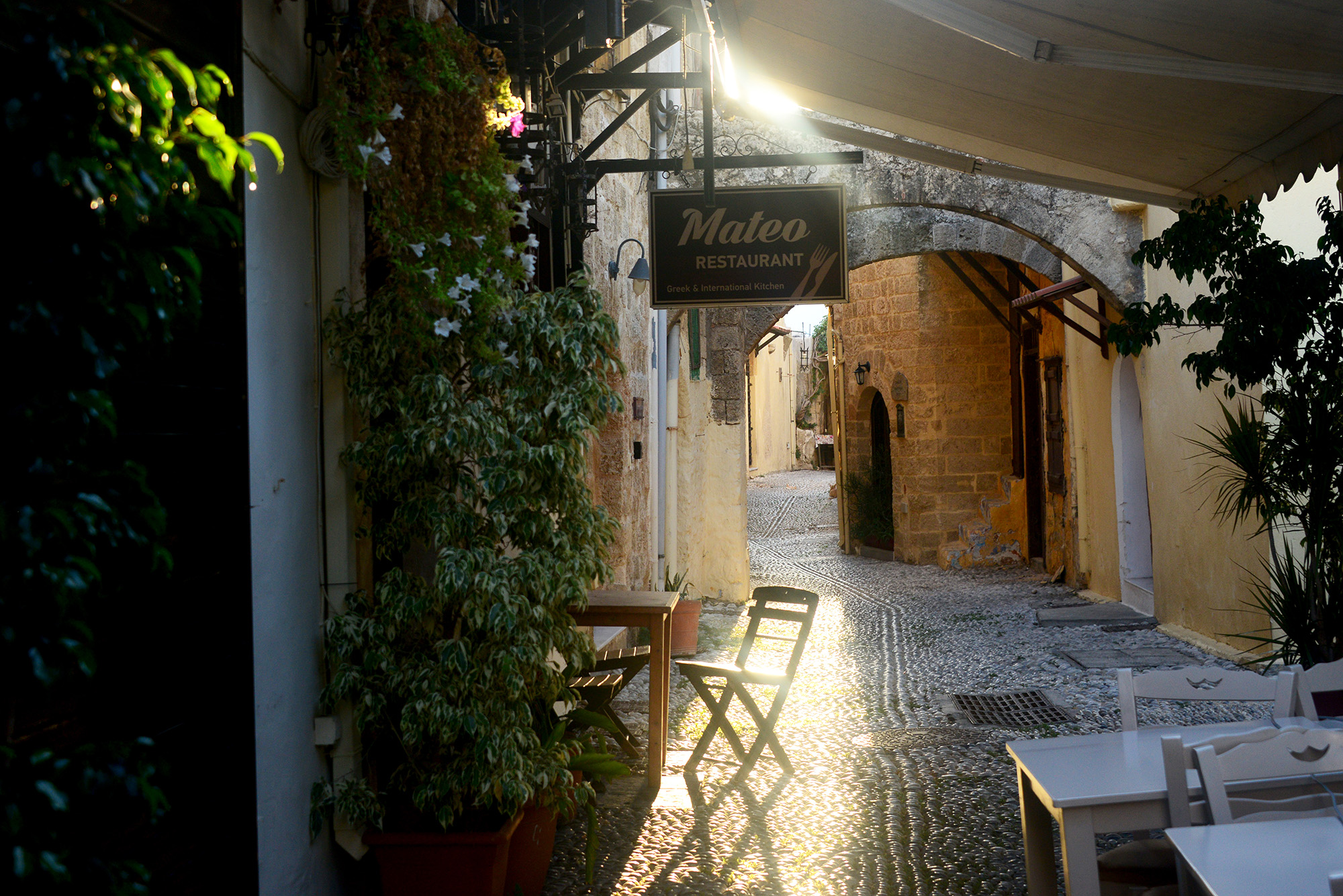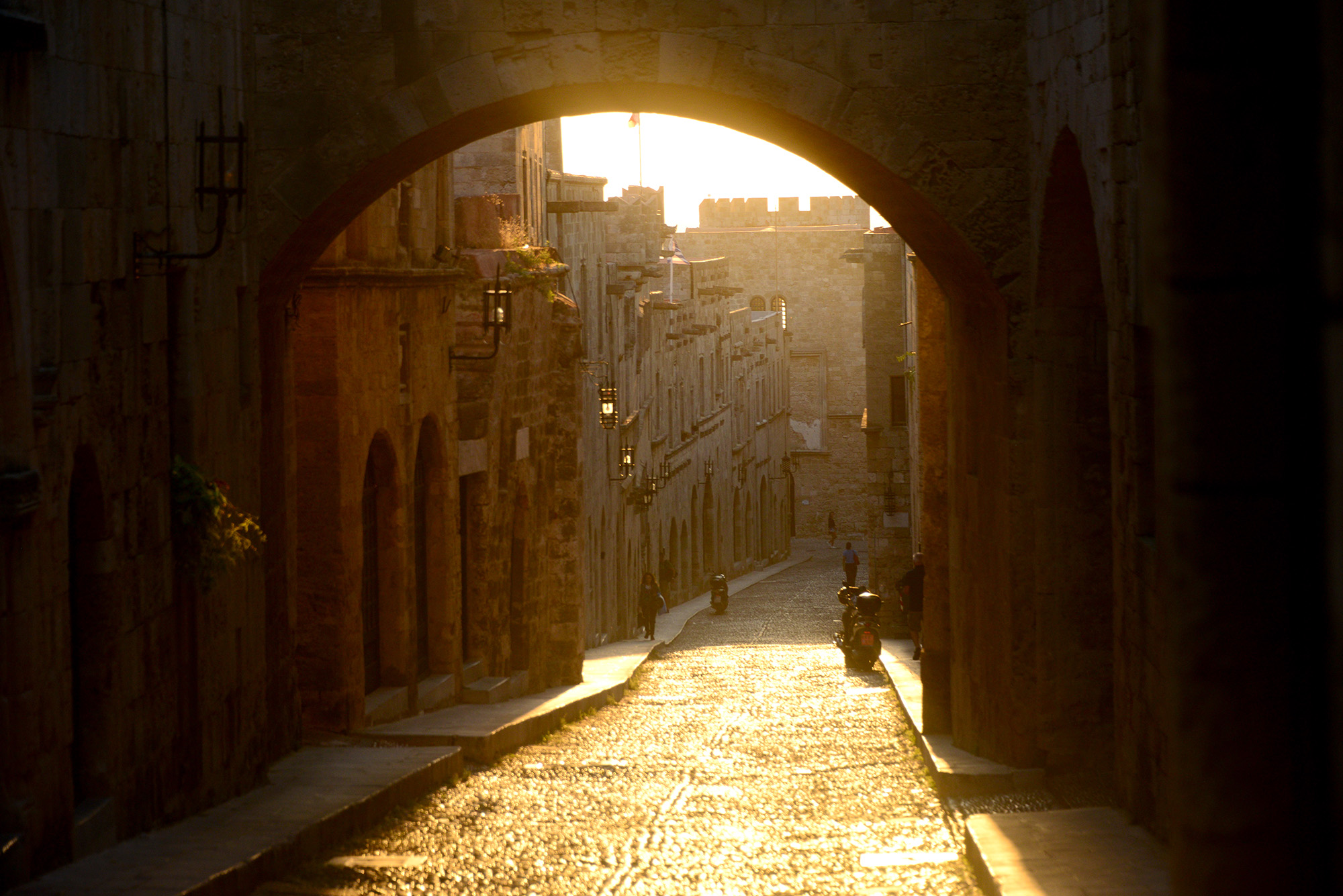Before the Ottomans, the island had some unexpected overlords: the Knights Hospitalier, freshly evicted from Jerusalem, conquered the island from the Byzantines in 1310. They built the medieval fortifications which serve as the backbone of today’s old town. Among them, The Palace of the Grand Master, amply tampered with by the Italians, still dominates the landscape with its bulky majesty. Before the Knights, history had flown in its familiar course: Roman and Byzantine rulers. Even earlier, in the mists of ancient time, the islands welcomed waves of Greek settlers, Minoans, Myceneans and the Dorians who built the three famed cities which can still be glimpsed today in an array of collapsed temples and acropolises: Ialysoss, Kameiros and Lindos. Why Rhodos then, you will ask. Legitimately, and for a while the island was known by the name of its, at the time, principal city, Lindos. The most widespread theory considers Rhodos to have come from the Greek for rose, rhodon, of which there are plenty on the island. One is prone to such musings when walking down the deserted Street of the Knights at dawn, when the rays of the sun rising over the sea suddenly enter the alley straight on, as if the walls were built as a perfect conduit for the light. This is sound travel advice, to wake early on a Greek island. Most locals and tourists won’t, so you’ll have the streets to yourself. More sound advice, and less rambling, in the next instalment.
