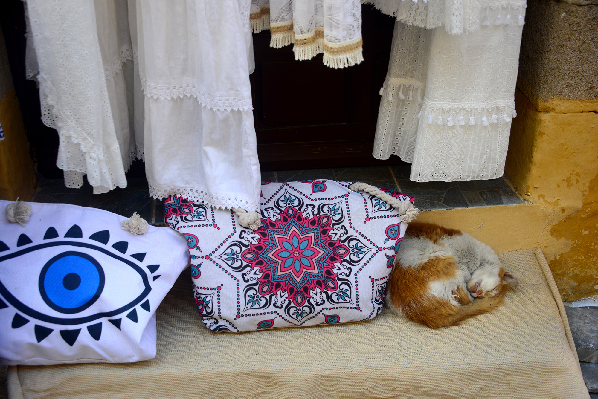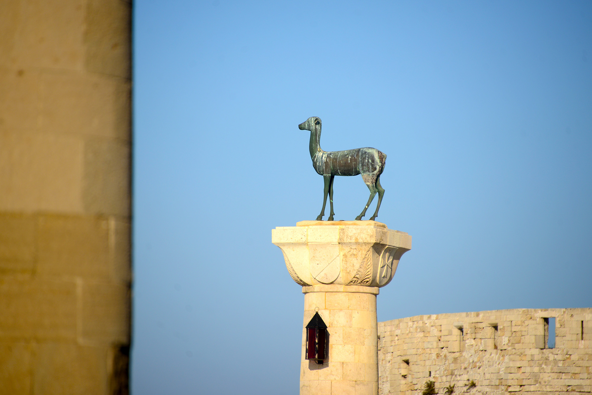 The first thing to admire in the port is an absence. That of the Colossus, of course. Two deer are perched delicately on columns guarding both the entryway and a motley crew of fishermen trying their luck in the shallow, crystal clear waters. This is where the Colossus may have stood. Also, it may have not. Perhaps it was straddling the entry to the port, but, most likely, it wasn’t. Accounts of exactly how it looked, and what it was made of, are often contradicting one another. We know it represented the sun god Helios, and, in its complete and unscathed form, existed for a mere 54 years, until serious damage was inflicted on it by an earthquake, in 226 BC. Locals refused to rebuild it on a warning from the Oracle of Delphi, as you did in those days. The last remains of the colossus were carried away by Arab invaders in 653 AD. Today, the Colossus is a tantalising tale of may have beens, a thrilling historical puzzle to unwrap, or the perfect subject of a daydream. All that, plus a fanciful decoration on fridge magnets, ash trays, bottle openers, kitchen towels, wrapping paper, soap boxes, tablecloths, medallions or dog bowls.