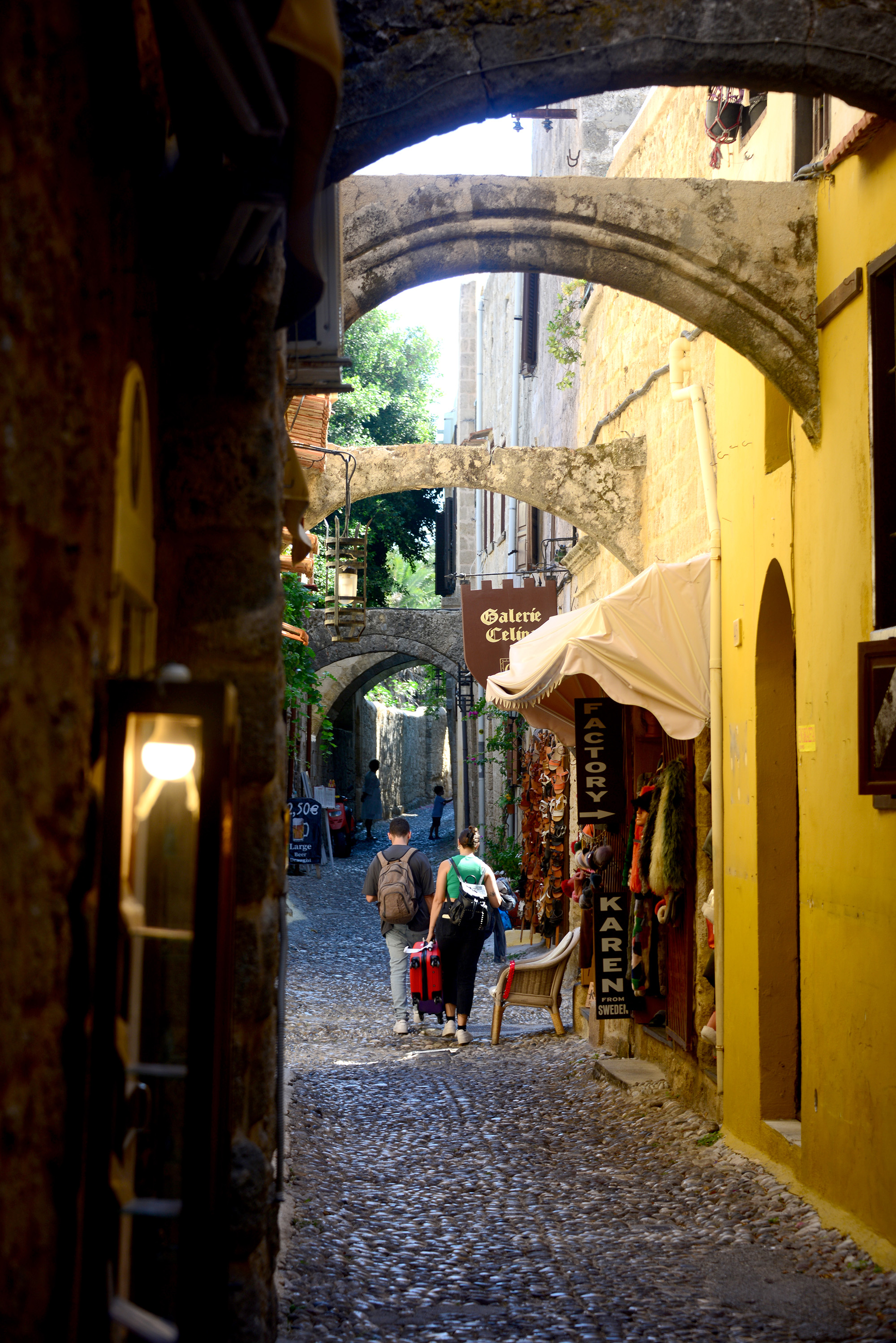 But then, of course, Rhodos snuck its way back to my heart. It definitely won’t be my favourite Greek island, which is quite alright, because it’s a very quirky one, at that. It only became part of modern Greece after WWII. Before that, it was the Italians who held the Dodecanese, the group of islands that Rhodos belongs to. Dodecanese would mean twelve. There’s fifteen of them, but let’s not get bogged down by that. Before the Italians, the island belonged to the Ottoman Empire, and the old town is dotted with fine examples of Ottoman architecture, most notably the pink hued Mosque of Suleiman, built in 1522 to commemorate the conquest of the city by Suleiman the Magnificent’s troops. Greek flavoured Turkish speech can still be heard in Rhodes- as the island belonged to Italy during the 1923 population exchange, the local Turks were not subject to it, and automatically became Greek citizens in 1947. Most of them stayed. The Ottoman Empire also encouraged Sephardic Jews, expelled from the Iberian Peninsula, to settle on the island. Their community flourished in the neighbourhood known as Juderia, the outlines of which are still discernible today, up until the tragic events of WWII, which destroyed the community and displaced the few who survived.