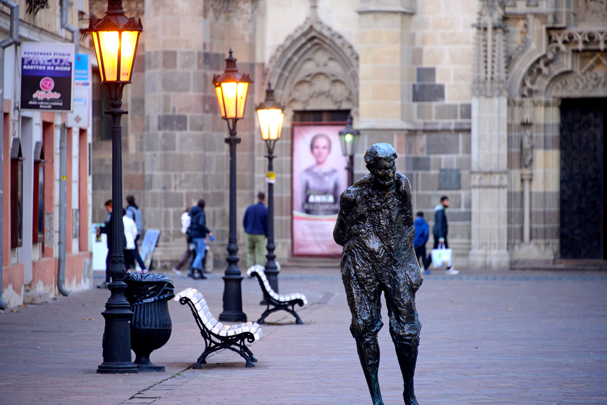 Upon arrival, we were of course still blissfully unaware of the trials and tribulations of the return trip, and Košice revealed itself aglow in unexpected sunshine. I took an instant liking to it, as it reminded me of my hometown of Arad, which makes sense, given that their current iterations bear the visible marks of flourishing times in the twilight of the Austro-Hungarian Empire. They are also similar in size, with Košice being just slightly larger at 236 000 inhabitants. This does, however, make it the second largest city in Slovakia and the undisputed centre of the country’s Eastern provinces. And that’s not all- historically, both share an adventurous fate in the turmoil of central European history, with a shifting mix of populations, in Košice’s case, Slovak, Hungarian, German and Jewish communities called it home at varying times. Given my circumstances, I should have known better than to expect Košice being an essentially Hungarian town, but somehow, I did. In Hungarian it has a distinct name, Kassa, and it’s connected to many historical events people feel emotional about. So much so that there is a particular category of tourist, generally middle aged or elderly Hungarians arriving in groups, who walk the streets of the town with the faces of believers on the eve of rapture, breathing history through their pores. My radar picks them up immediately, because they often come to Arad too, to see our modest version of the Statue of Liberty. I suspect some people will make both trips, and many more in the surrounding areas.