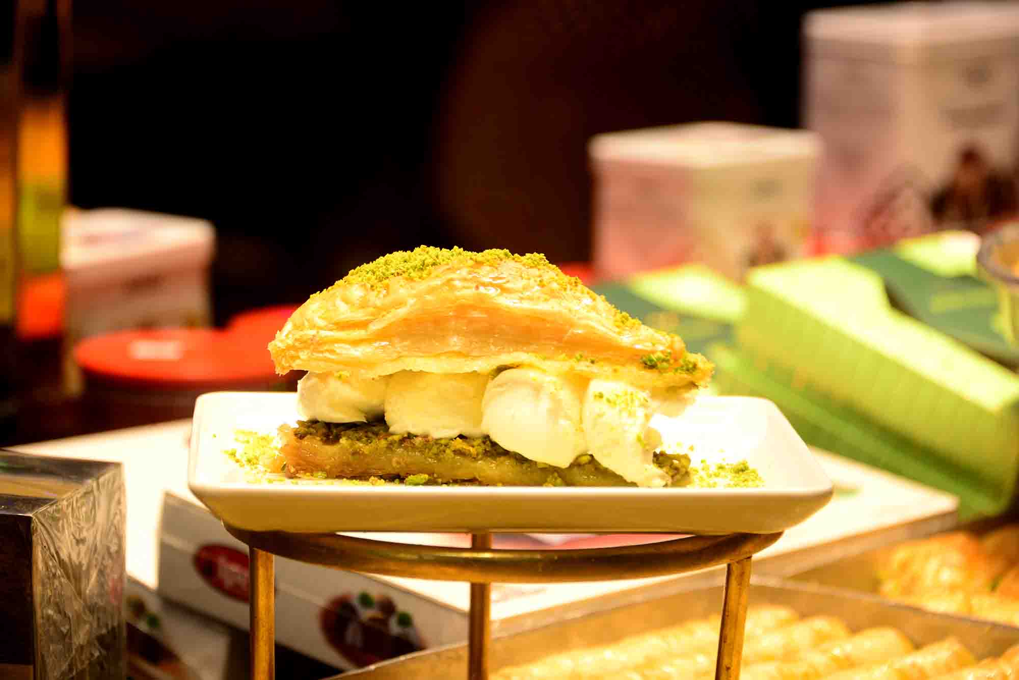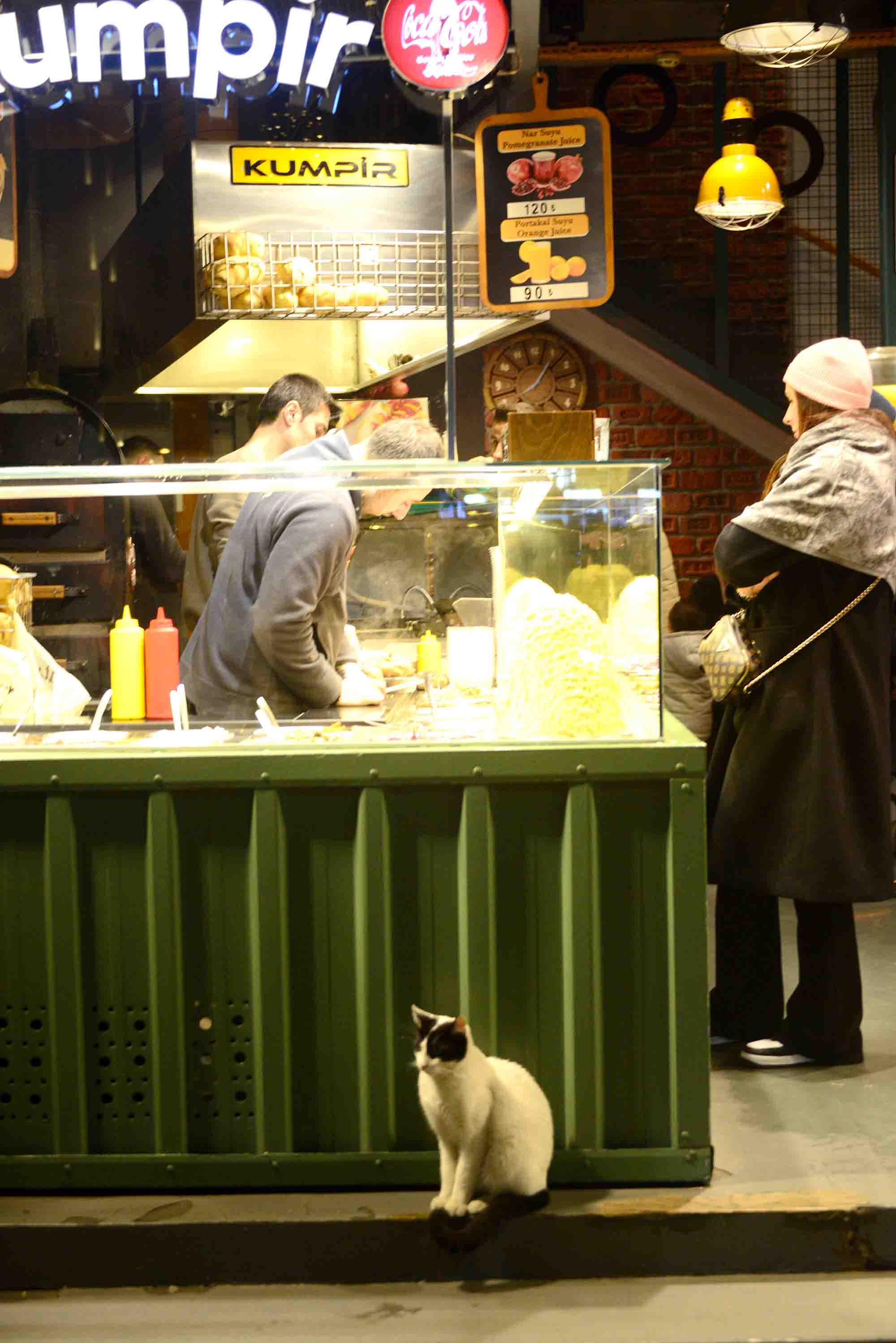 With an Alice in Wonderland experience sadly averted, we walked through the Akaretler district, along well-preserved 19th Century row houses, which, as we discovered, were built as homes for the high-ranking officials serving at the Dolmabahaçe palace. Given the late hour, which is to say about 4 PM in December, we did not see much of the Maçka and Gezi parks as we were making our way towards Taksim square, but at least the steep road by the Hilton became exciting, that is, ridiculously slippery under a very fine icy drizzle. Our next stop for the evening was Flekk, a cocktail bar with a Scandinavian vibe and a trippy infinity mirror in the bathroom, becoming ever trippier as cocktails multiply. These are excellent cocktails, but of course we recommend moderation. Should moderation fail, there is an unexpected solution nearby, in the form of kokoreç. The blog’s industrious co-photographer happens to be an absolute kokoreç fiend, thinking about this exquisite delicacy as soon as he sets foot on Turkish soil. He has been known to plan entire days and reorganise carefully laid out family trips with the sole purpose of consuming kokoreç. I have always found this passion of his somewhat outlandish as kokoreç is made of lamb intestines, usually served as a sandwich, with pickles on the side. I have however learned that few things work their magic quite like kokoreç when you are pleasantly tipsy, and want to keep it that way, also avoiding next day’s hangover. Given the fact that views on alcoholic consumption are manifold in Turkey, there are people who eat kokoreç simply for the sake of it. These people remain great mysteries to me, but who am I to judge what I do not understand.