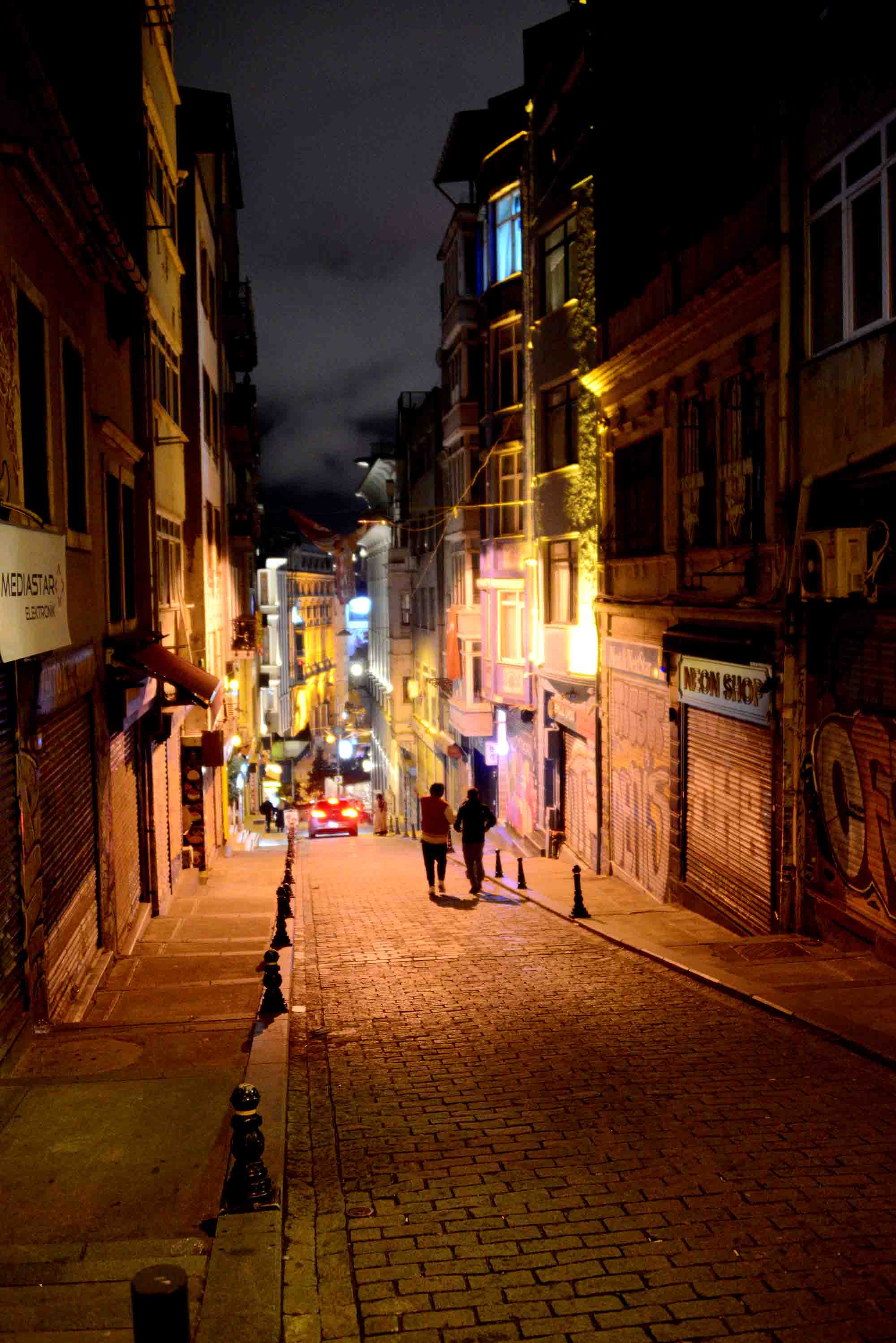 The vibe in Galata’s Şampiyon Kokoreç was very jovial on a balmy winter’s evening (the drizzle had come and gone) and this made us open to one of the great joys and, simultaneously, ills of our modern times: unnecessary shopping. Most establishments lining Istiklal avenue and the adjacent streets will be open late into the evening, justly counting on trapping hapless tourists like moths. And so we entered Aponia, because they had a cute cat (all stores in the area have a cute cat) and a rather sleepy clerk smiling beatifically (all stores in the area have such a clerk) and we bought T-shirts, because we needed more T-shirts. Obviously, we didn’t, but in the long run, I can soberly justify this purchase with the facts that I did not have purple T-shirts, and now I do, and the material is incredibly soft and comfortable. The material is also locally sourced, made, etc, you know the drill. Both our evening, and subsequent morning perambulations in the area- warmly recommended as incredibly efficient cardio workouts-also took us onto Yüksek Kaldırım street, which happened to be mentioned several times in the novel I was reading at the time, Burhan Sönmez’s Labyrinth, and such random factoids always delight me more than they should.