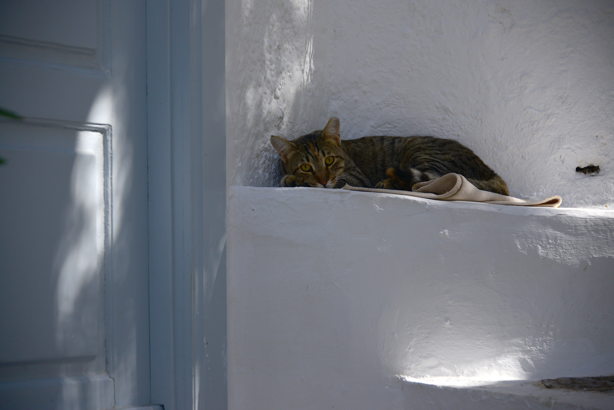 After the run comes coffee, and I am starting to wonder if I have some sort of Stockholm syndrome when it comes to having coffee in Greece, and in particular, the immensely popular freddo espresso and freddo cappuccino varieties. In the unrelenting heat, they start to make sense, including the fact that people will slosh them around until they become essentially slightly coffee flavoured cold water. Compared to our first visit, I find good coffee in many more places, Lavein, The Lemon Trees, even the one in EU bakery tastes better now, especially in the context of it being the only place open ridiculously early in the morning- that would be 7, right before the first boat to Piraeus docks in the port. It’s a splendid pastime, sitting at the weather battered tables in front of the bakery at the crack of dawn, the tip of the surf occasionally licking your ankles, and you just watch the world go by. Or stay by, like the lady who was painting her nails while having breakfast. It was a highly engrossing undertaking, as she would occasionally miss the outline of her nails, and not mind the least bit. She eventually lifted her hands, coral blue paint smeared quite unevenly, and sighed with pleasure: ‘Nice!’.