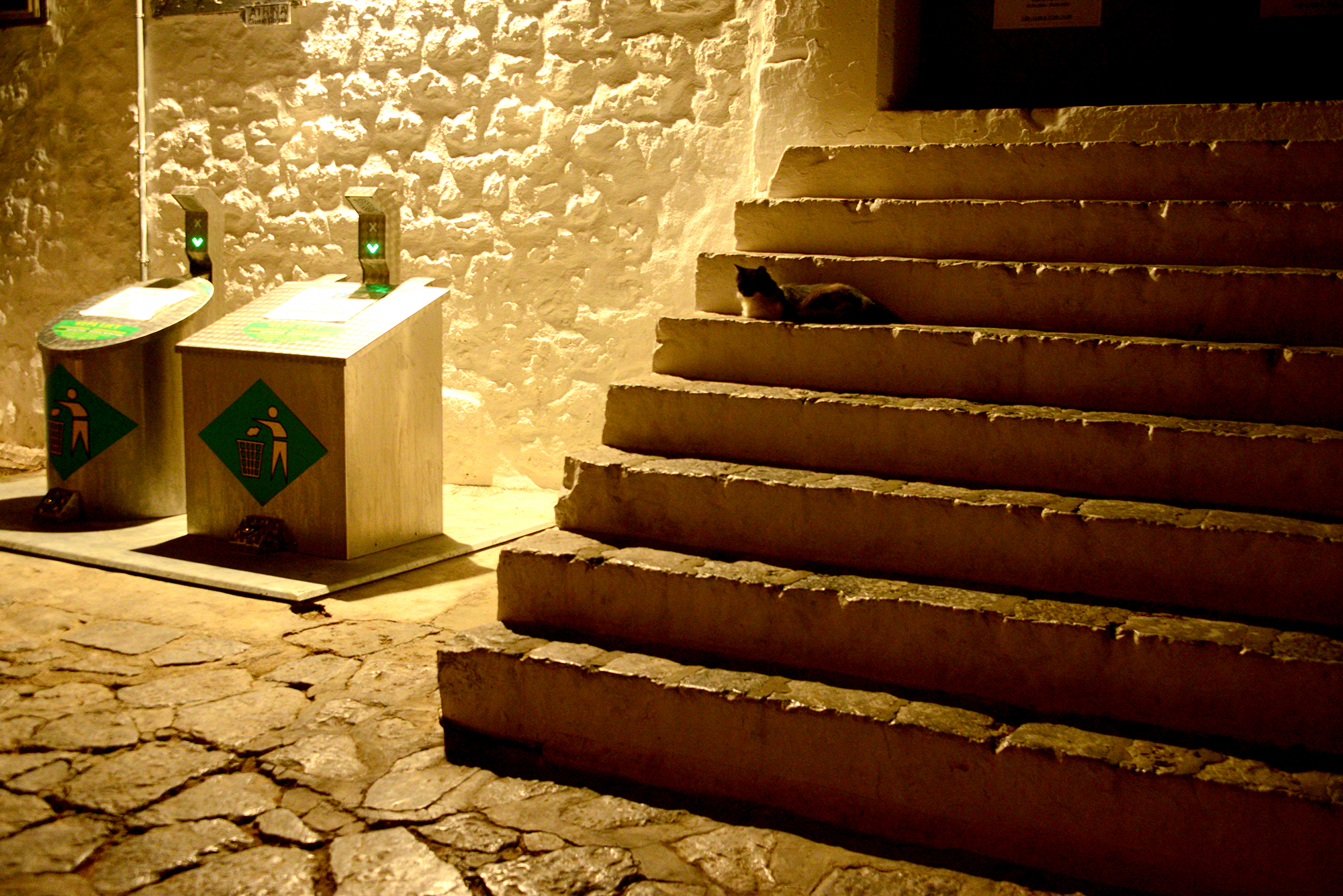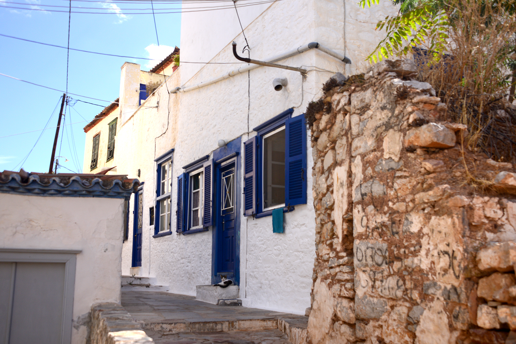 If you crave some alone time, but don’t want to hike all the way up to the monasteries, you can consider a walk to Kiafa, the old quarter which preserves traces of Hydra’s let’s call it pirate-y past- perched high on the hill, it was perfect as a lookout for incoming enemy ships, and it had a mazy structure of walls, some of them still standing, which connected houses to each other, making escape routes easier in case of need. Today, it has some secluded villas for rent, and some property for sale, but it’s otherwise closest in life rhythms to a traditional Greek village- come early afternoon, it’s peacefully enveloped in the scent of slowly cooking food, cats purr away on doorsteps, the silence occasionally punctuated by the cries of children or the hum of a TV or radio. Speaking of radio- I have long given up on most commercial stations, and only very accidentally bumped into Radio Kosmos on our guest house TV’s sound only menu. It has however proven to be a most pleasant discovery, a way of shaking my senses from a certain Spotify algorithm induced monotony. Wandering through Kiafa I had to remark on the much-improved quality of the mobile network, which had the habit of impolitely disappearing ever so often in previous years, especially on narrow streets up the hill. In further surprises, the garbage disposal area outside the football pitch has now been upgraded with the speaking gates of Hades- two underground waste collection containers which can be opened by pushing a pedal and will then proceed to blurt out instructions in both Greek and English, to the incredible merriment of the area’s children, who play with them relentlessly.