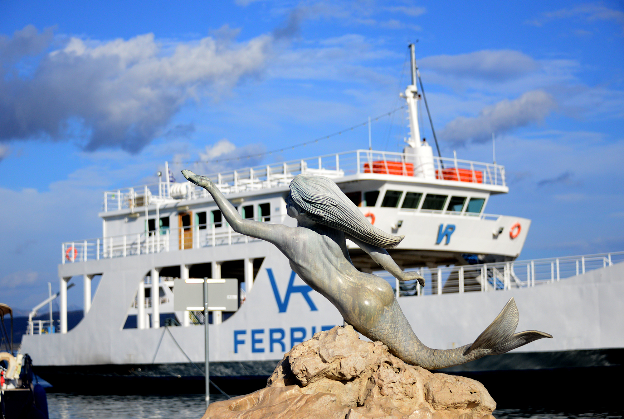 There was only one other person getting off in Poros, which seemed intriguing to me, as I assumed a day trip from Hydra to Poros makes sense, but then the upcoming day taught me that this was not necessarily the case. Another surprise came when I figured that Poros is, in fact, not one, but two islands: the southern, smaller, one, which is the island you see from the port, is called Sphaeria, whereas the northern one, divided from it by a very narrow straight, is called Kalaureia. Even more surprises were to come: the one museum of interest located on the island, The Archaeological Museum, is open every day, except for Tuesday. You guessed it very right; I was there on a Tuesday. Having somewhat recovered from this unexpected setback, I climbed to the bell tower, on what I later realised was the decidedly less scenic route. I had come prepared for magnificent ancient statues, what I got was a weird white rabbit proudly displayed in a window. The locals were ogling me with suspicion, the strange tourist rambling their peaceful streets obscenely early on a day which was becoming increasingly overcast. Guest houses were being advertised here and there, alongside establishments which provided hot showers and a towel for the wary traveler. The place clearly felt like a point of transit rather than a destination.