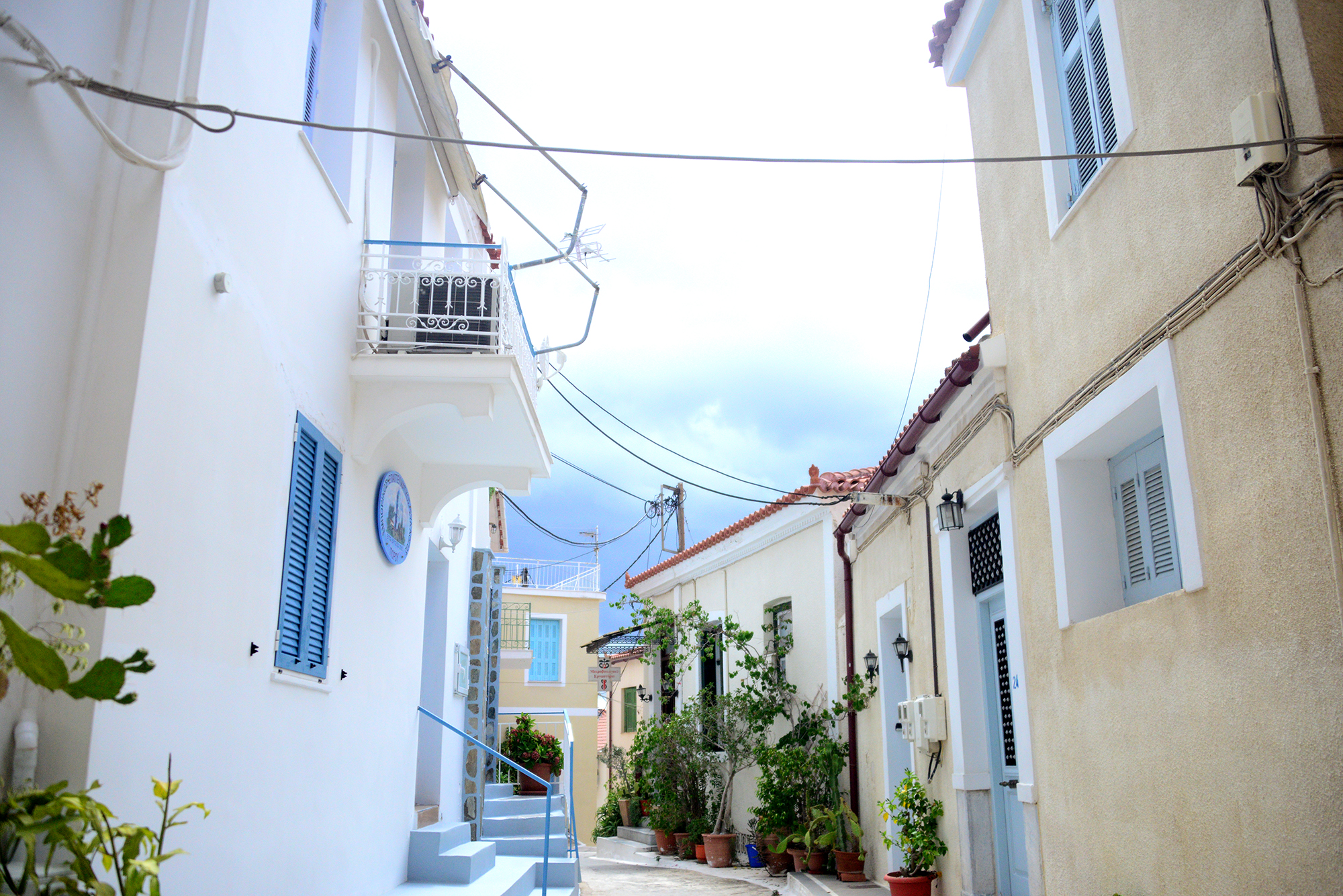 Riding the wave of euphoria, I finally found the scenic route to the bell tower, with lovely, whitewashed houses complete with surprising art deco elements, and bumped into a busy area which clusters many shops and restaurants, including the Sokaki Taverna, which serves simple but delicious local staple dishes, and the Glykisma sweet shop, which has splendid baklavas and orange cakes. It can be safely said that, compared to Hydra, prices on Poros tend to be lower- a plate of good if unspectacular soutzoukakia with a side dish and a glass of red house wine cost 11 euros altogether. On the final stretch before returning to the port to catch the evening ferry, I discovered a hidden gem: the Olivelab Naturals store, which has a great selection of body care and home décor items. I am confident I could have looted the thing like the Crusaders entering Constantinople, but I held back in the name of conscious shopping. I still do consider it reason enough to take a break from the ferry ride on your way to Hydra, or when travelling back to Athens.