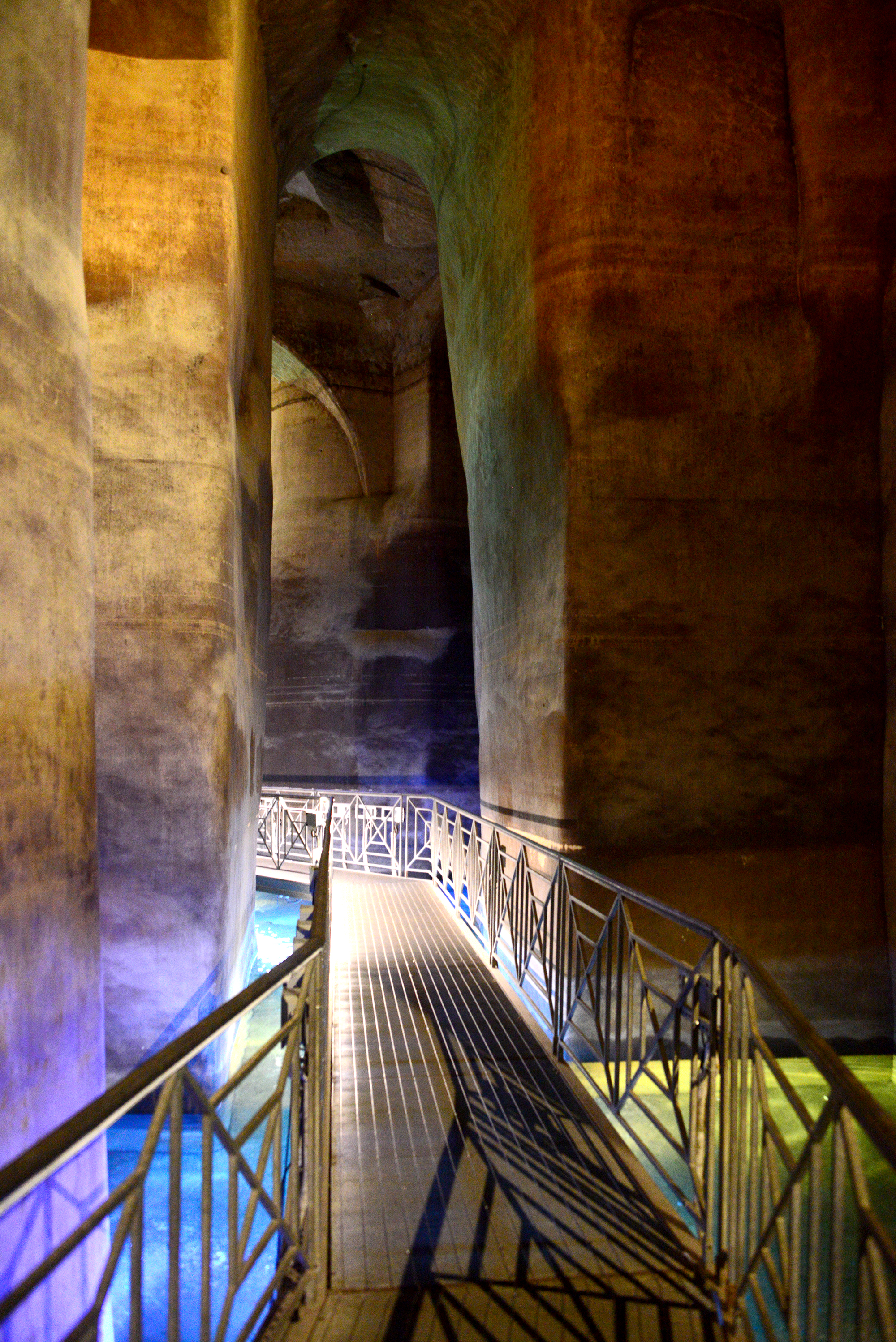 To be in line with the spirit of the place, we went for a cave accommodation- the San Pietro Barisano Residence, which we warmly recommend, on account of the great amenities, the superb coffee we were served with our breakfast and the complimentary cute dog- a shaggy, lovely, potato shaped old thing which was the first staff member to arrive on location at 7 AM, patiently waiting for the opening of the buffet area. Spending the morning on the terrace overlooking the Sassi, watching the pink and apricot shades of the rising sun slowly colour the ancient walls was a blissful affair, yet I must admit that I would find living in a cave a bit oppressive in the long run, even with modern amenities such as electricity and running water. There is something menacing in the silent, cold rock closing in on you- while we think of life in the sunny south as carefree and easy going, Matera is more a story of survival in spite of the elements, and not thanks to them. Even water was hard to come by- while the town’s structure offered protection from attackers, it did make carrying water up the hill an arduous affair. Several cisterns were built to collect rainwater, of which the largest was the Palumbaro Lungo– no longer in use, it can be visited for another three euros, which seems the amount Materans like to charge for about everything.