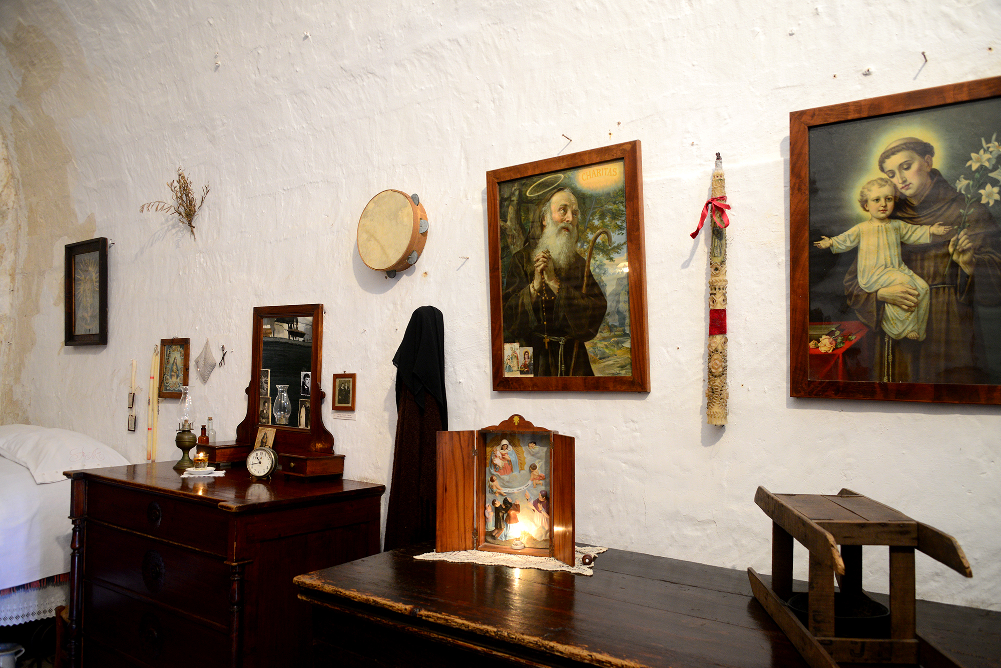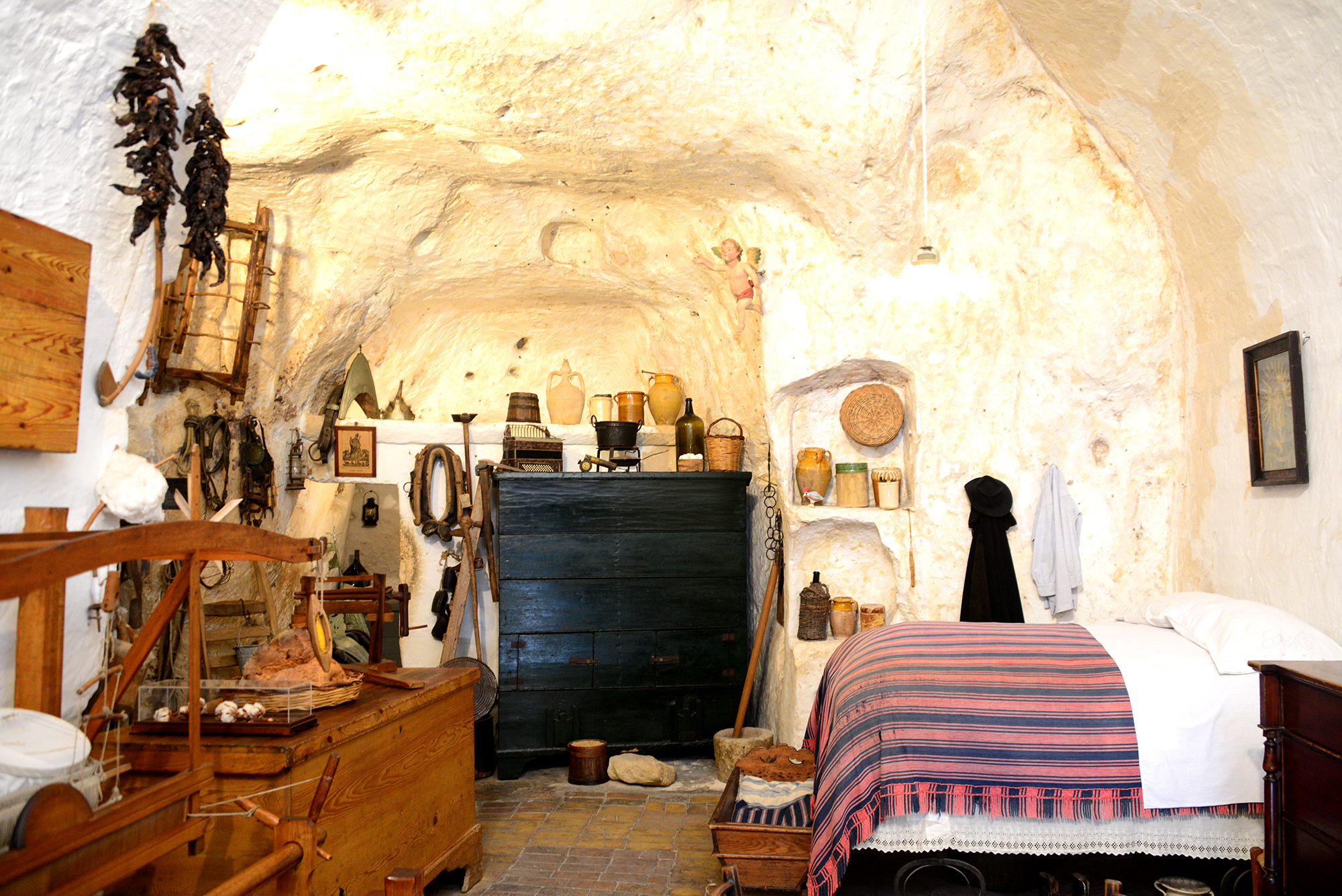 And a very old place this is, one of Europe’s oldest continually inhabited settlements (along with another one of our recent destinations, Malága): the first traces of habitation date back to the 10th century BC. The town lies on the banks of the Gravina river, at the boundary between the regions of Puglia and Basilicata- the latter was historically known as Lucania, which became a very exciting detail for the blog’s industrious co-photographer, once he discovered his new favourite Italian amaro, the Lucano. While the company is based in Pisticci, further south in the Matera province, they do have a flagship store on Matera’s Via del Corso. Matera’s main claim to fame are, of course, the Sassi- cave dwellings which were excavated from the fairly soft limestone, sprawling along about a dozen levels, with connecting courtyards known as ‘vicinati’, and the cathedral crowning it all from the town’s acropolis (as most of Italy’s southern regions, Lucania’s shores were also home to powerful Greek colonies). Today, the Sassi are mostly used for hospitality, as the last ‘real’ cave dwellers were moved into modern accommodations, built outside the old city core, in the 1950s. One of the last inhabited homes, Casa Grotta del Casalnuovo, is set up as a museum, and can be visited for the very reasonable price of three euros. The cave, of about 50 square metres, and with the tiniest of windows facing the riverside, was home to a family of eight, plus their horse, mule, pigs and chickens. While the practicality of the arrangement would make IKEA designers proud, with the kitchen wall packed full of utensils and the bedsheet drawer doubling as a bed for the younger children, the living conditions do strike a modern visitor as incredibly harsh and very remote from the Italian poster concept of dolce vita. As such, in the early 20th Century, they were considered bad press for the region- the Fascist regime drew up plans to relocate the inhabitants of the Sassi to newly built model neighbourhoods, but the project was only finalised in the 50s. While on the face of it, the move was reasonable and necessary, some do believe that a more thoughtful strategy would have better suited the preservation of the city’s ancient ways of life and traditions- a very interesting read on the topic can be found here. Today, the Sassi are a bit of an artificial entity, with bars, restaurants, hotels, small shops and artist’s residences. A ubiquitous sight are stalls of decorative objects made of terracotta, most notably the cucù, a small, vividly coloured rooster that doubles as a whistle, traditionally used to ward off evil spirits and bring prosperity. They are contagiously cute, so I currently have one benevolently staring at me as I write these lines.