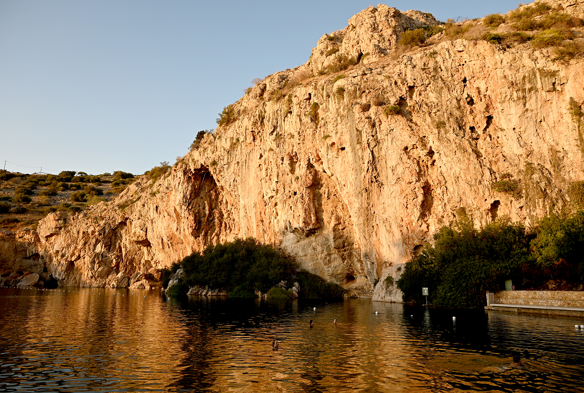 The most unexpected delight of the weekend was, however, Lake Vouliagmeni. From the centre, you can reach it by taking metro line 2 to Argyroupoli and then bus 122. Apps will often tell you to go all the way to Elliniko, and switch to the bus there, but Argyroupoli is a better option as the bus arrives much emptier and the trip is quite long, so finding a seat makes it considerably more comfortable. Once you arrive at Vouliagmeni, most signs will point to the beach, which, by the looks of it, is quite nice too, but we were set on the lake and we have no regrets. The lake was formed around 2000 years ago, by a collapsed cave which created a lagoon, fed by the waters of the sea through an underground channel and by freshwater springs from Mount Hymettus. I must share an anecdote here about Mount Hymettus: it is locally known as Trellóvouno, crazy mountain, and I was bracing myself for a story about a mental asylum or at least one very crazy person doing something of note in the area. No. It’s the French. They called it ‘très long’, when they were bumbling around it during their Grand Tours in the early 19th Century. A fair observation, as it stretches for over 16 kilometres.