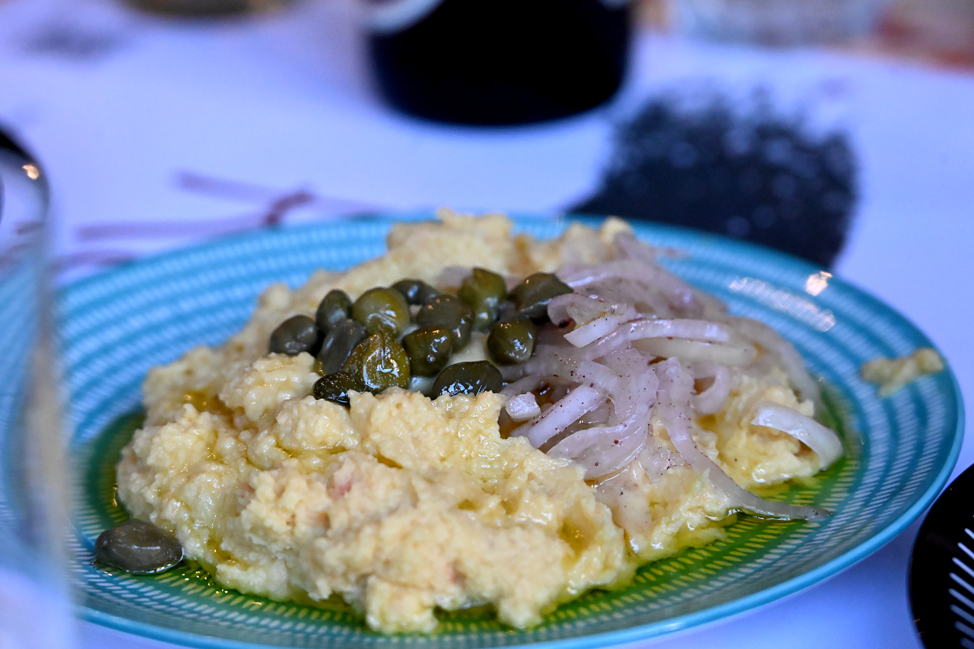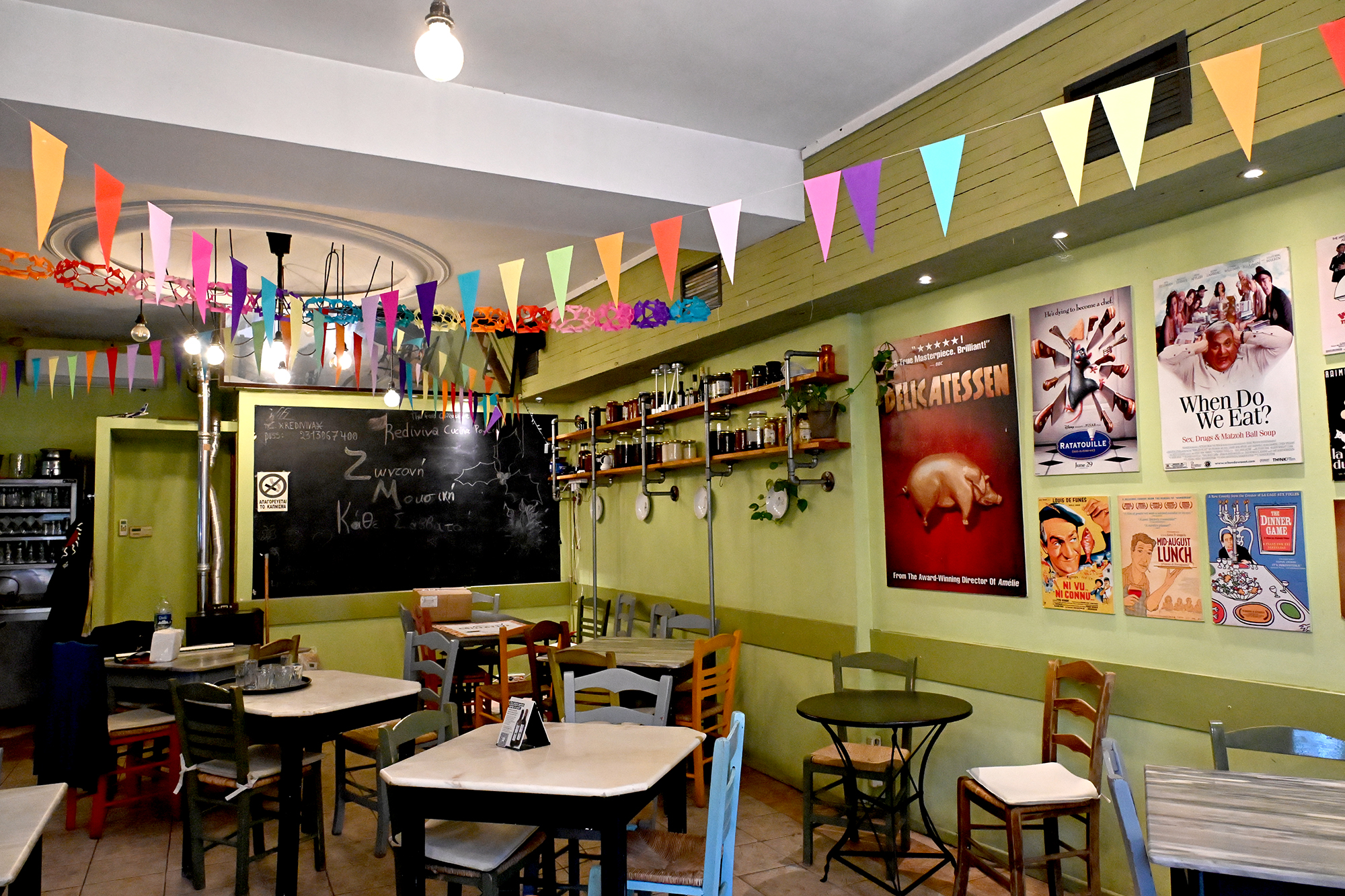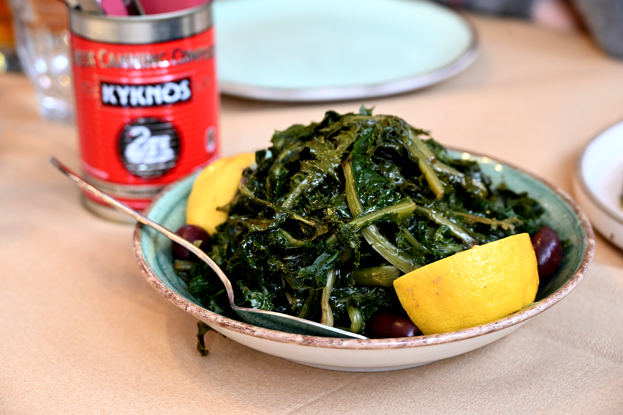 On the first evening, I was delighted to discover a place with great soutzoukakia and brilliant salads, plus pleasant interior design, only to realise it was the same Diavasi that I had found to be somewhat bland looking four years ago. Proof that sometimes change is for the good, though I am not sure about the disappearance of the fireplace from Taverna O Thodoros. Its removal has definitely added to the space, necessarily so, it seems, as our first attempt to visit was foiled by the crowds waiting to be seated. As we were to find out, the ebullience of the weekend was caused by the double whammy of the Thessaloniki Documentary Film Festival and the Agrotica Farmer’s Conference taking place at the Helexpo center. This being said, we managed to return the next day to O Thodoros and could live the dream of trying the horta-a dish described mysteriously as ‘greens’. There’s about 80 types of leafy vegetables that can be used for preparing it: ours felt like it could be primarily dandelion, and while as a standalone the taste would likely be too exotic, it goes well as a side dish to meats and cheeses.