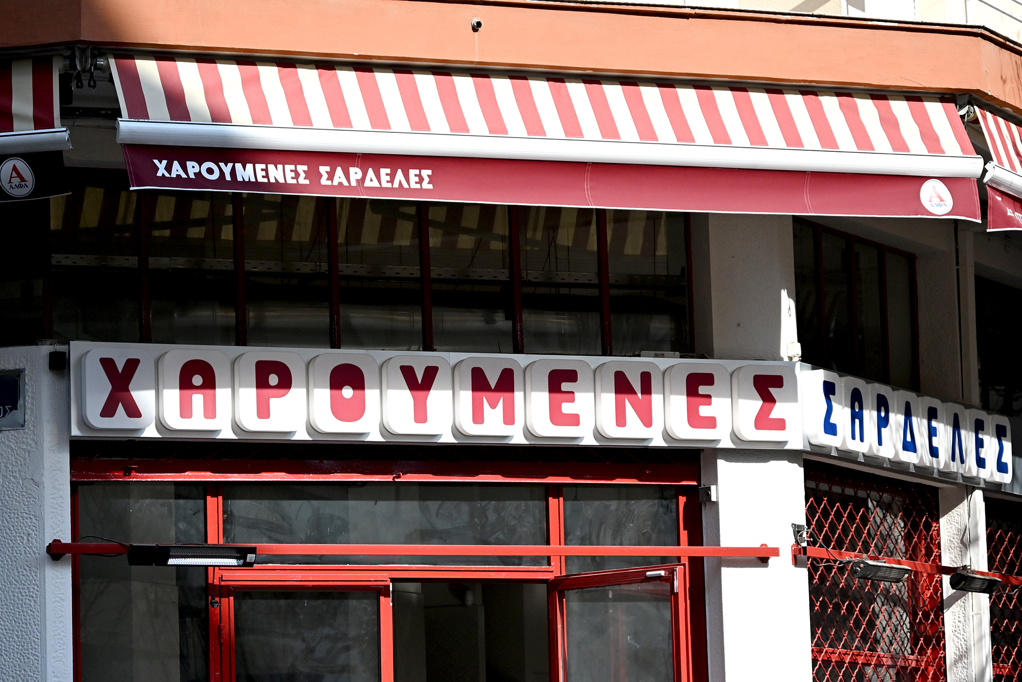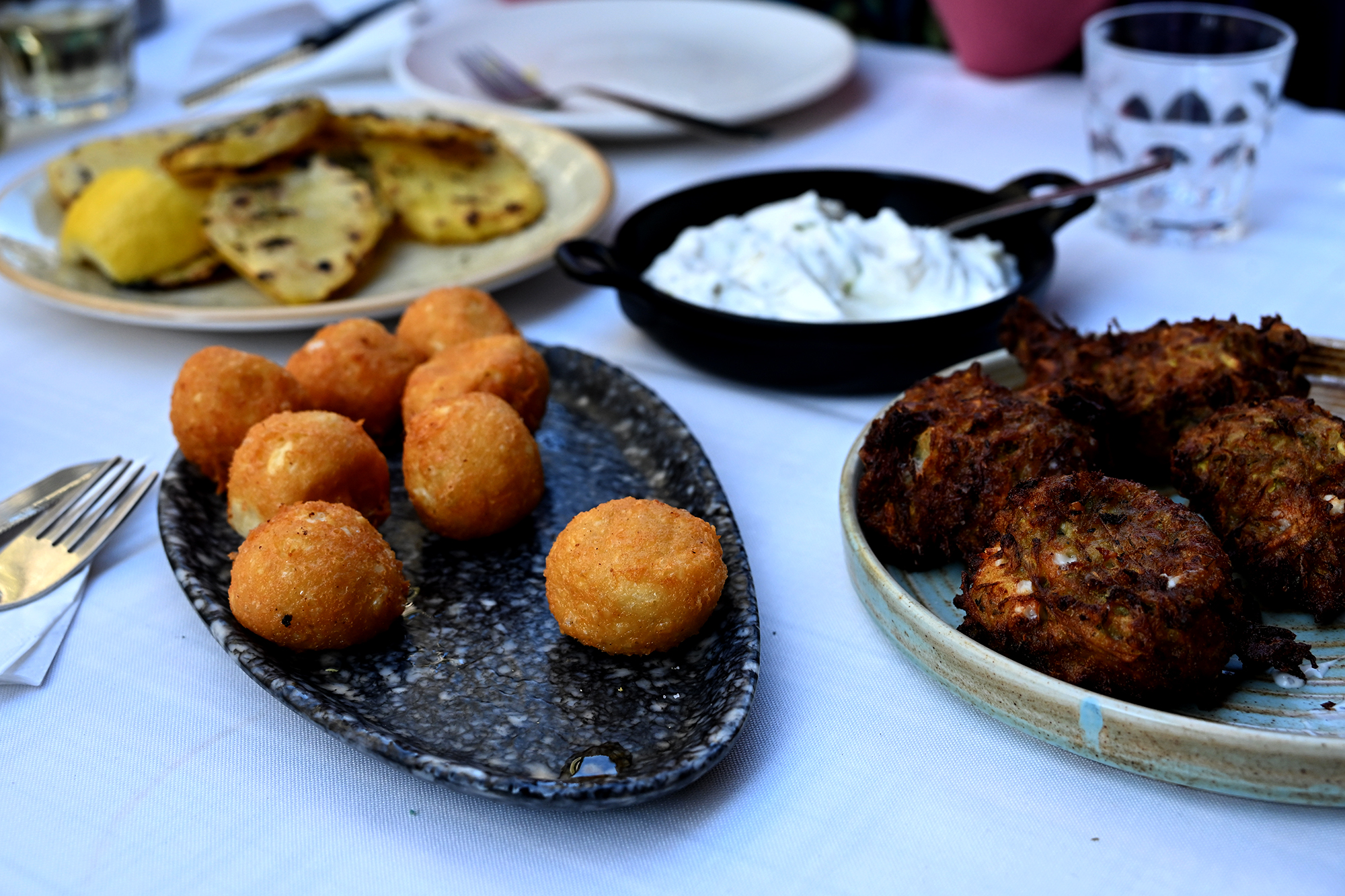 Since the last time around I did poorly on documenting the food, I tried to make up for that during this visit. For breakfast, Bougatsa Giannis remains unbeatable, though one morning we were beaten- by the queue. We decided to have a classic breakfast instead, on the terrace of Café Oino. Omelettes sounded like a fine idea but then one of the omelettes failed to materialise and we soon saw our waiter scuttle off into the warm morning. Perhaps he had had enough of serving omelettes and had decided to conquer Persia, which is all the rage these days, anyway. The actual reason for his departure was soon revealed: the establishment had run out of eggs, and, this being a Sunday morning, they were not all that easy to procure. The crisis was nevertheless resolved, and, as we waited, we could eavesdrop on the train of thought of a Croatian couple stuck in omelettes limbo as well: what was the strange language spoken at the neighbouring table (ours), this exotic cacophony of unfathomable vowels. They settled on Hawaiian.