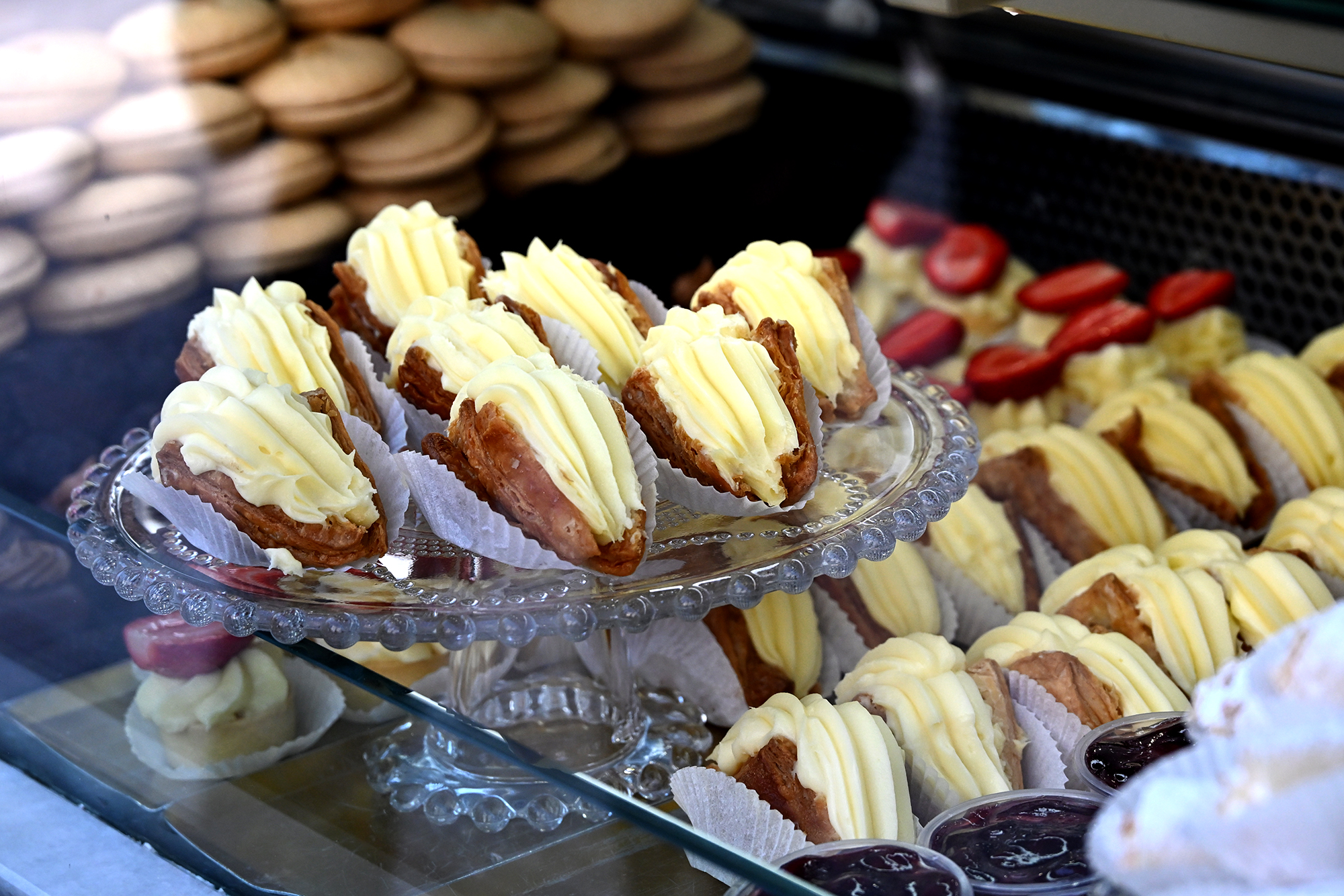 Up in Ano Poli, we settled on Rediviva Cucina Povera, as it was warmly recommended by a lady standing in front of its entrance. We assumed she was the waitress, but it turned out she was just another guest, which is a great way to get a recommendation. As described by the name, they focus on simple, local staples, which in Thessaloniki implies a mix of Greek, Ottoman and Sephardic cuisine. The keftikas de puero (leek meatballs) were particularly delicious, though, as a warning for meat eaters, the leek is definitely the star of this dish. Kivotos ton Gefseon is tucked around the corner from CafĂ© Oino, near the Rotonda, so much so that the same large ginger cat holds double employment at both places. Their hunkar begendi (translated from the Turkish roughly as ‘the sovereign liked it’, essentially an aubergine-beef stew) proved to be absolutely delicious. Having seen people queue extensively to procure themselves trigona, we decided to give this typical Thessaloniki dessert a try. Triangle shaped (hence the name), they are basically the love child of a baklava (the pastry part) and a pastel de nata (custard cream is involved in the filling). They are delicious but brazenly sweet, so I would probably settle for one a week and then run the whole length of the Thessaloniki boardwalk on the resulting energy burst. Popular spots in the centre are Trigona Elenidi and Konstantinidis, ours came from the latter. Finally, I must mention the delight of traveling to Greece with a fellow retsina lover. We spent the trip trying several different sorts, such as the Vassiliki and the Kechri, only to come to the conclusion that nothing beats the good old Malamatina, the most basic version which you can find in supermarkets and kiosks for a pittance. The thick taste of resin is the taste of sunshine in Greece.