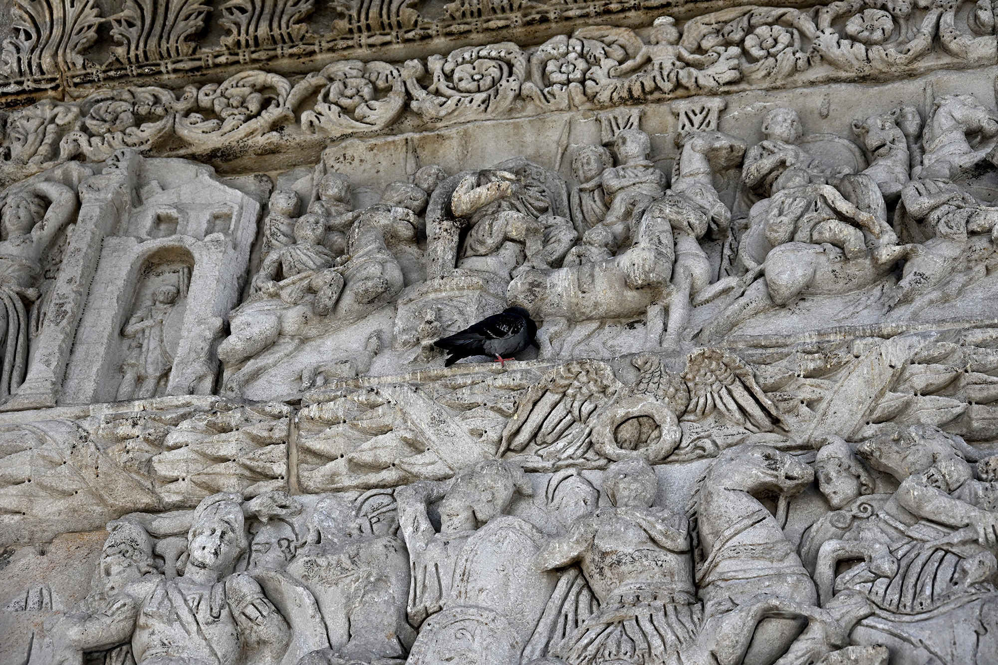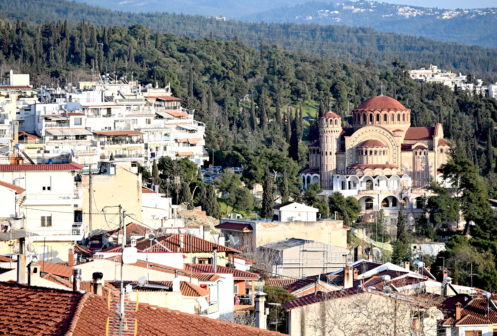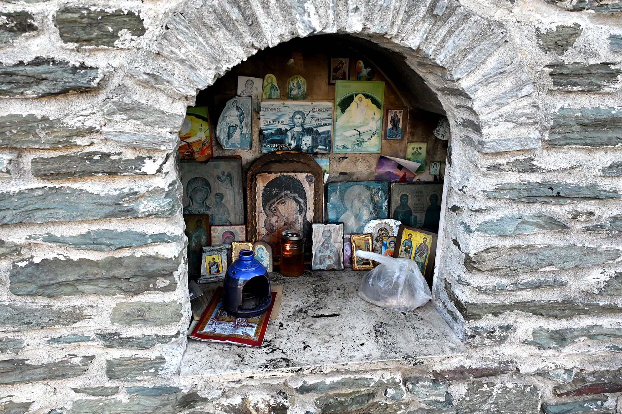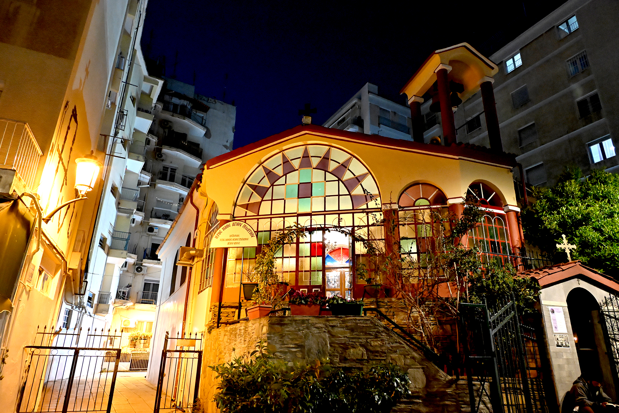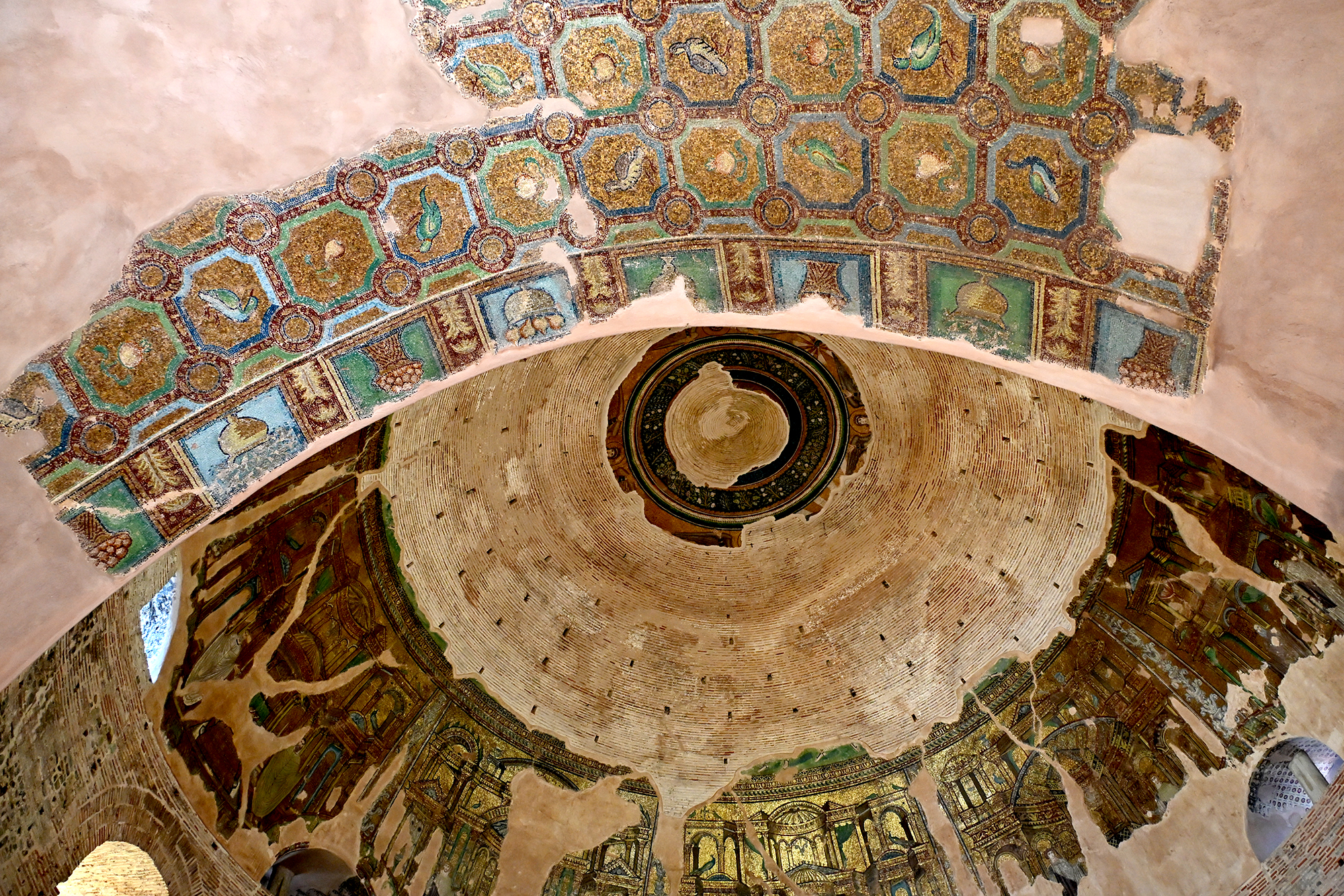 Rather disappointingly, we again missed out on a visit to the Osios David church and its famed mosaic as the 9 to 15:30 opening hours proved unexpectedly challenging to our schedule. We did visit the Church of Saint Demetrios, dedicated to the city’s patron saint. His relics are to be found in the church, though, as with the remains of Saint Nicholas in Bari, the story is more complicated than it seems. After his death in around 306 CE, the relics went missing, and showed up in Thessaloniki about a century later, their veracity remaining contested until they helpfully started emitting a strong scented myrrh. Greek tradition worships him as the patron saint of agriculture, peasants and shepherds, a job he likely inherited from the similarly named goddess Demeter. The church in its current form dates back to the 7th century, when the initial shrine, ravaged by fires, was reconstructed, and is home to six mosaic panels from the early 8th century, before the start of Byzantine iconoclasm. It served as a mosque during Ottoman rule, and was extensively renovated after being damaged in the great fire of 1917. During the renovation works, a Roman well was discovered, which some believe may have been the place where Demetrios’s body was dropped after execution.