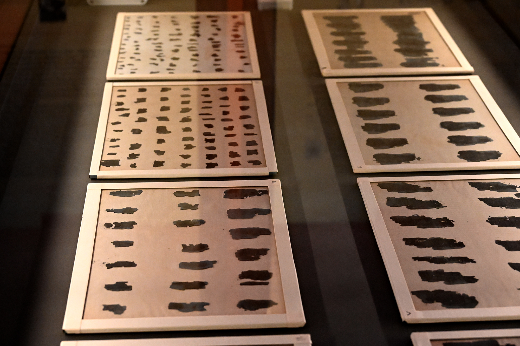 THE papyrus was at the very end of a rather more engaging exhibition covering the gold treasures of Macedon, including many splendid, intricately worked gold wreaths, which, nevertheless looked like being incredibly uncomfortable when placed on the head, though, at the number of battle injuries people tended to get in those days, the wreaths may have been the least of their problems. The Derveni papyrus was found in January 1962 in a tomb at the excavation site of Derveni, on the Thessaloniki to Kavala road. It dates to roughly 320-340 BCE, and was preserved through cremation. Due to the damp soil of the European continent, papyrus finds are exceptional, as opposed to Egypt and the Middle East, where dry soil helps preservation. The only other papyri found in Europe are rolls discovered at Ercolano, in Italy, also carbonised by an eruption of the Vesuvius. The Derveni papyrus is thus currently the oldest known European book, a commentary on an Orphic poem, the Hieros Logos, with an uncertain authorship. Euthyphro, a contemporary of Socrates, is considered to be the likeliest candidate, but as the preserved parts of the papyrus do not explicitly mention the author’s name, we will likely never know for sure. The reason why the papyrus would be included in the burial is also open to interpretation, one of the theories being that the person being cremated was an initiate into orphic rites, and the papyrus was meant as an evidence for his journey through the afterworld. During preservation work, the very brittle, burnt papyrus fell apart into hundreds of tiny scraps, which are exhibited in protective glass cases.