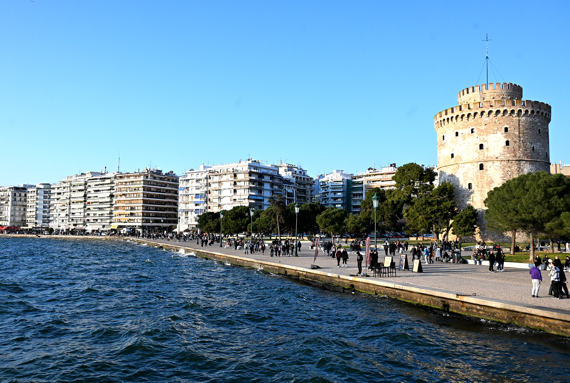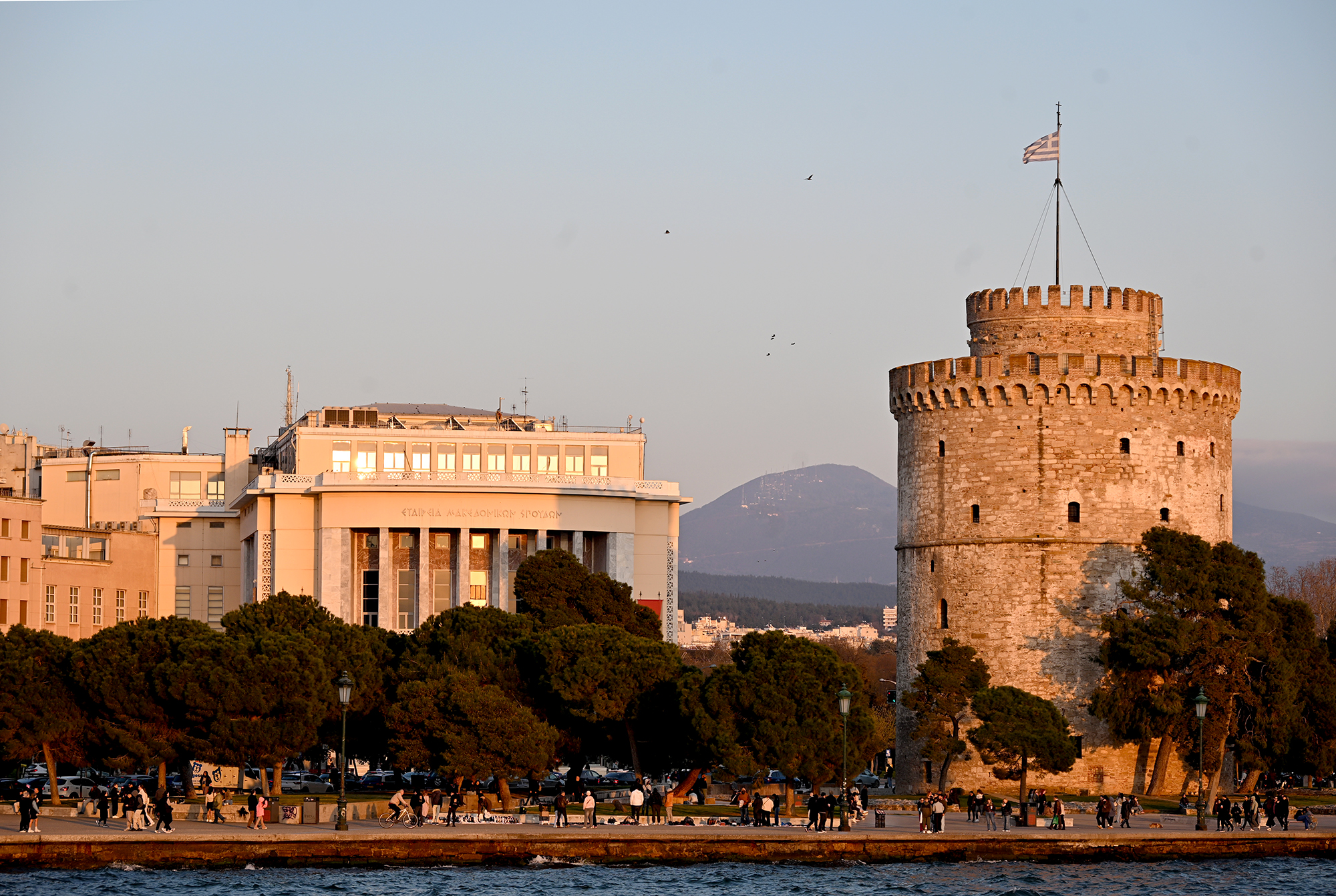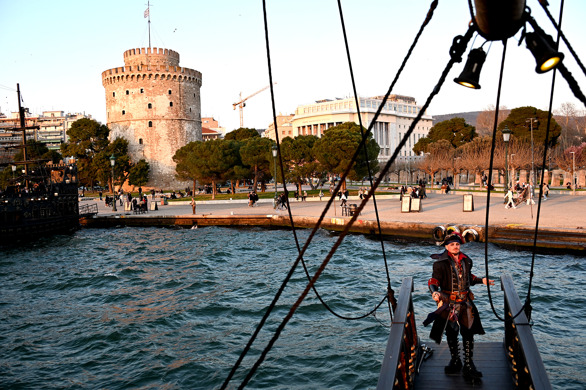 In decidedly unholier undertakings, we managed to tick one of the most touristy activities that can be done in a seaside city. We boarded a pirate ship, complete with a budget version of Jack Sparrow. A pair of these boats is moored close to the White Tower and, for 7 euros, they offer a short trip along the seaside promenade, up to the Crane Monument at the port, and back. We’d hopped on the boat in a spur of the moment decision, close to sunset and, given the price, I can say it’s very much worth is if one is on a short city break, and doesn’t have time to fit in longer boat trips. The setting sun cast its mellow orange light on the White Tower and the promenade, and the slow progress of the ship allowed for a leisurely inspection of the boulevard’s modernist architecture-as this area was in the centre of the great fire, it bears witness to the reconstruction efforts which followed it.