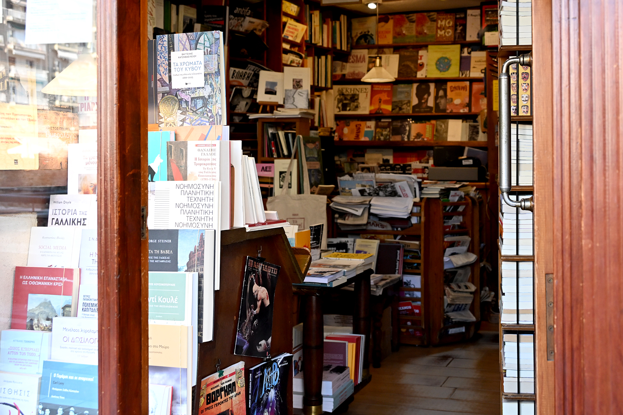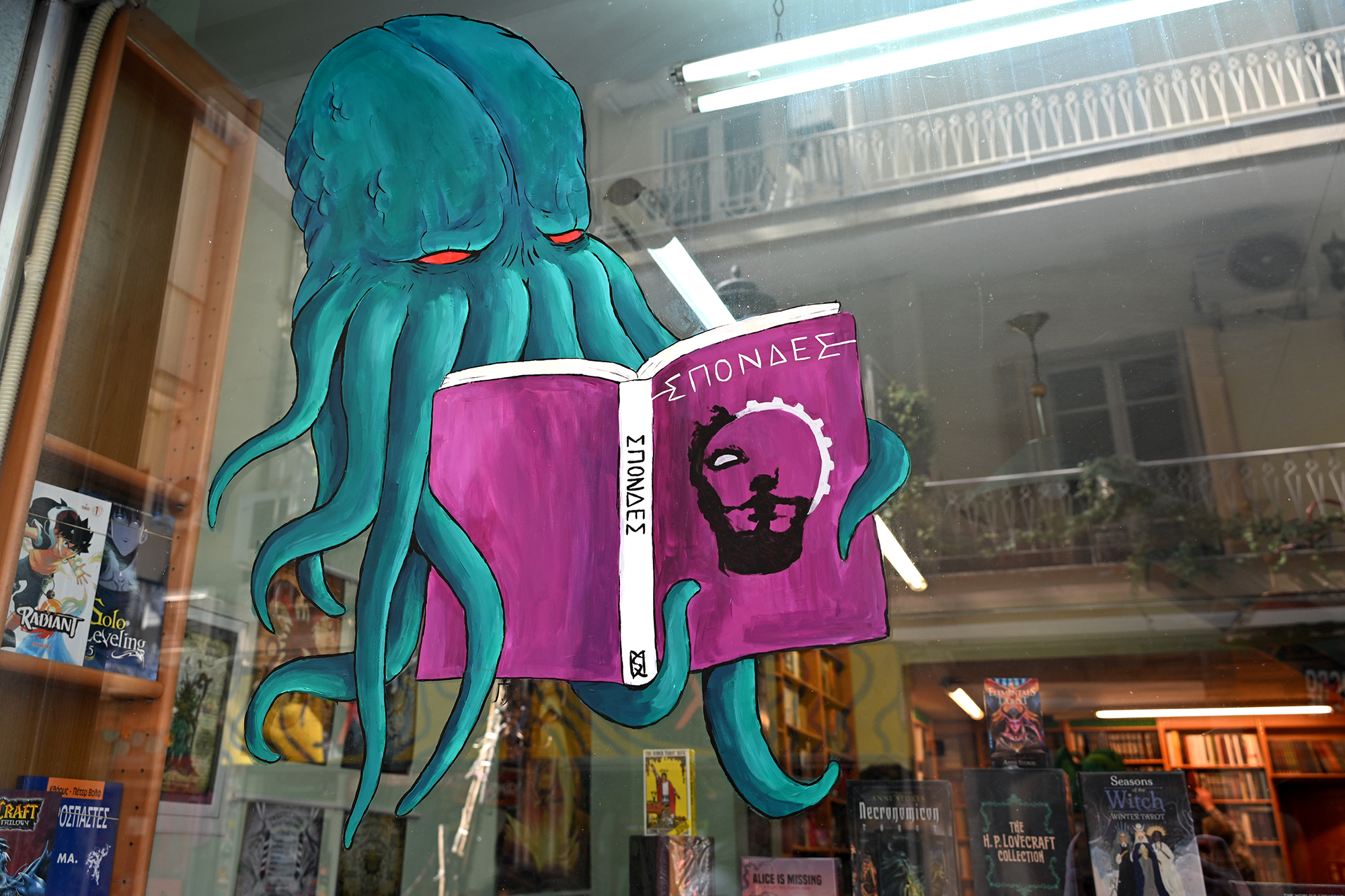 I had a great guide to the city’s recent history in Isidoros Zourgos’s book Λίγες και μια νύχτες (A Few and One Nights- I could find no official English translation, though hopefully one will follow, my copy being the Romanian one). It tells the story of Thessaloniki born Lefteris, spanning from Ottoman times to the seventies. I could have used it as a great prop for a bit of performative reading on an ancient wall, facing the sunset and Mount Olympus, which is likely an apex of the discipline. We accidentally bumped into a young Polish gentleman doing just that, and while romantically peering towards the horizon seemed more conductive to poetry, his genre of choice was geopolitics and military strategy, as represented by the works of Jacek Bartosiak. On the bookstore front, further to Mitakos books, which we’ve already recommended in a previous installment, we discovered the extremely well hidden gem of Malliaris Paideia, to be found on Gounari street just off the Arch of Galerius. The ground floor of this fine establishment is dedicated to stationery, and while chaotic, it provides a great selection of products at reasonable prices. Unbeknownst to many, the top floor is packed with books, both in Greek and in several foreign languages. The selection is decidedly eclectic, cheap editions alternating with rarities, and shares something of the ground floor’s chaos. The labyrinthine setup is however perfect for a book lover, and I found browsing this upper floor to be one of the most pleasant parts of the trip. On one side of the floor, there is a podium faced by chairs, likely used for various events, and, extremely helpfully, a toilet. Further down on Gounari street, To kentri is charming little bookstore, though most of their books are in Greek, while, around the corner on Aimilianoi Grevenon, the Unknown Kadath focuses on fantasy books, games and comics (mostly in Greek, some English books available). Certain authors sometimes have an unexpectedly intense following in random countries, and Greece is definitely enamoured with Lovecraft.
