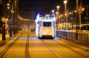 Christmas tram on Batthányi square Posted by pocketdiarybudapest on December 18, 2016December 19, 2016